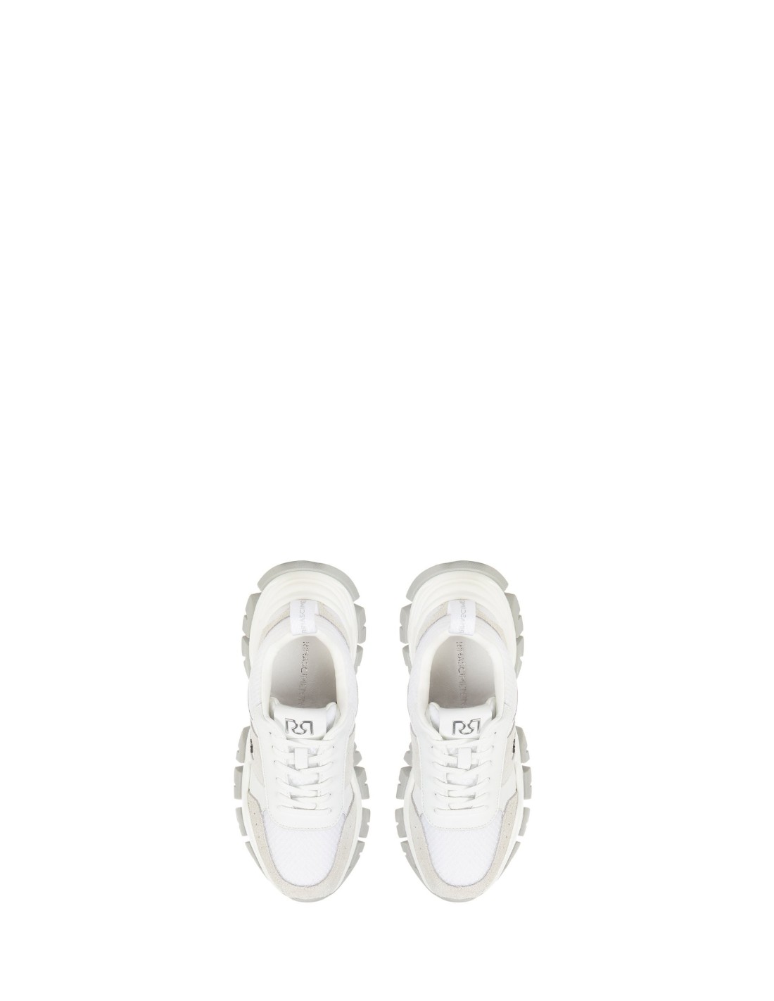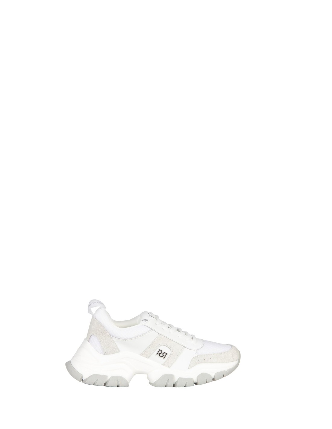 Sneaker Rinascimento com sola imponente, com parte superior em mistura de materiais macios e aplicações em simil-camurça que conferem textura e suporte. Logótipo RR lateral e calcanhar com alça para um calçar prático. Perfeita para o estilo do dia a dia, entre o escritório casual e a cidade.