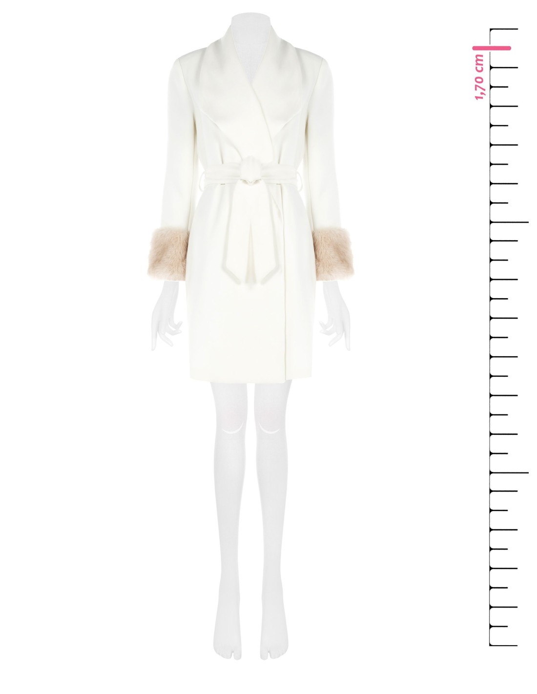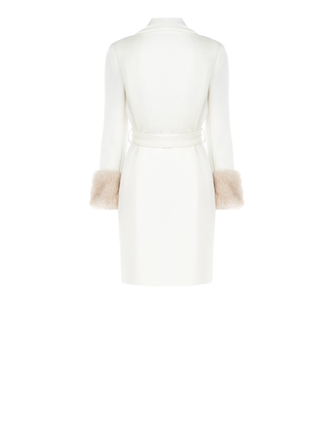 Casaco envolvente com corte tipo robe, caimento regular que realça a cintura graças ao cinto com passantes. Tecido macio com efeito de lã e forro interior deslizante. Lapelas largas e punhos em pêlo ecológico, pormenor que aquece e enriquece. Perfeito do escritório ao aperitivo, também sobre vestidos ou denim.