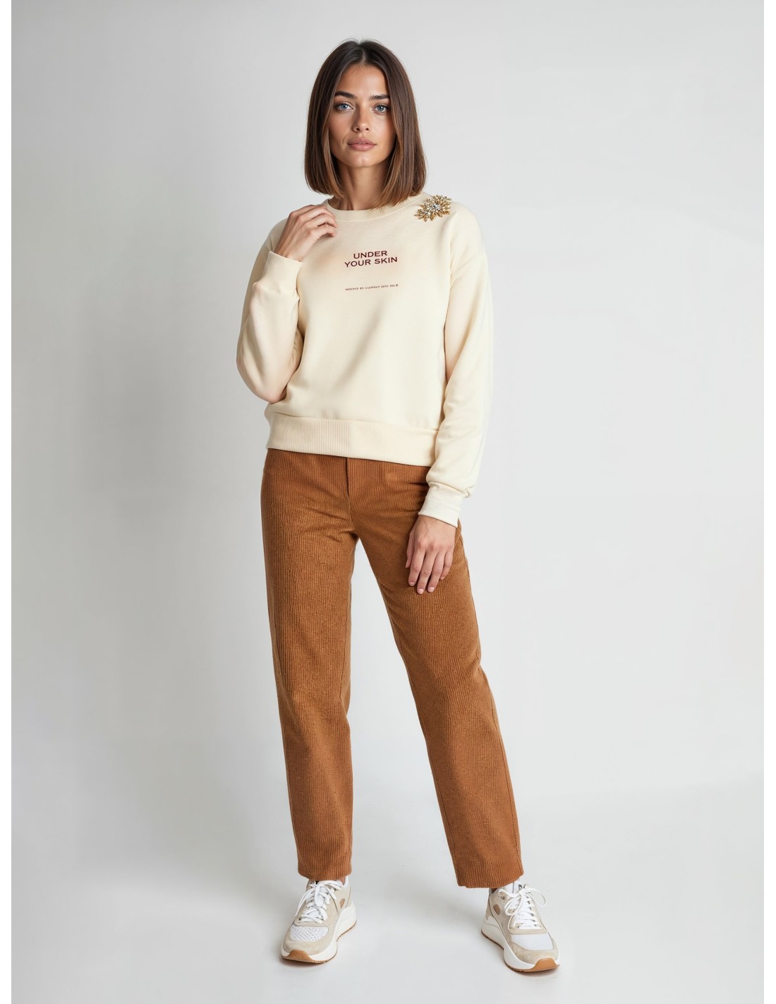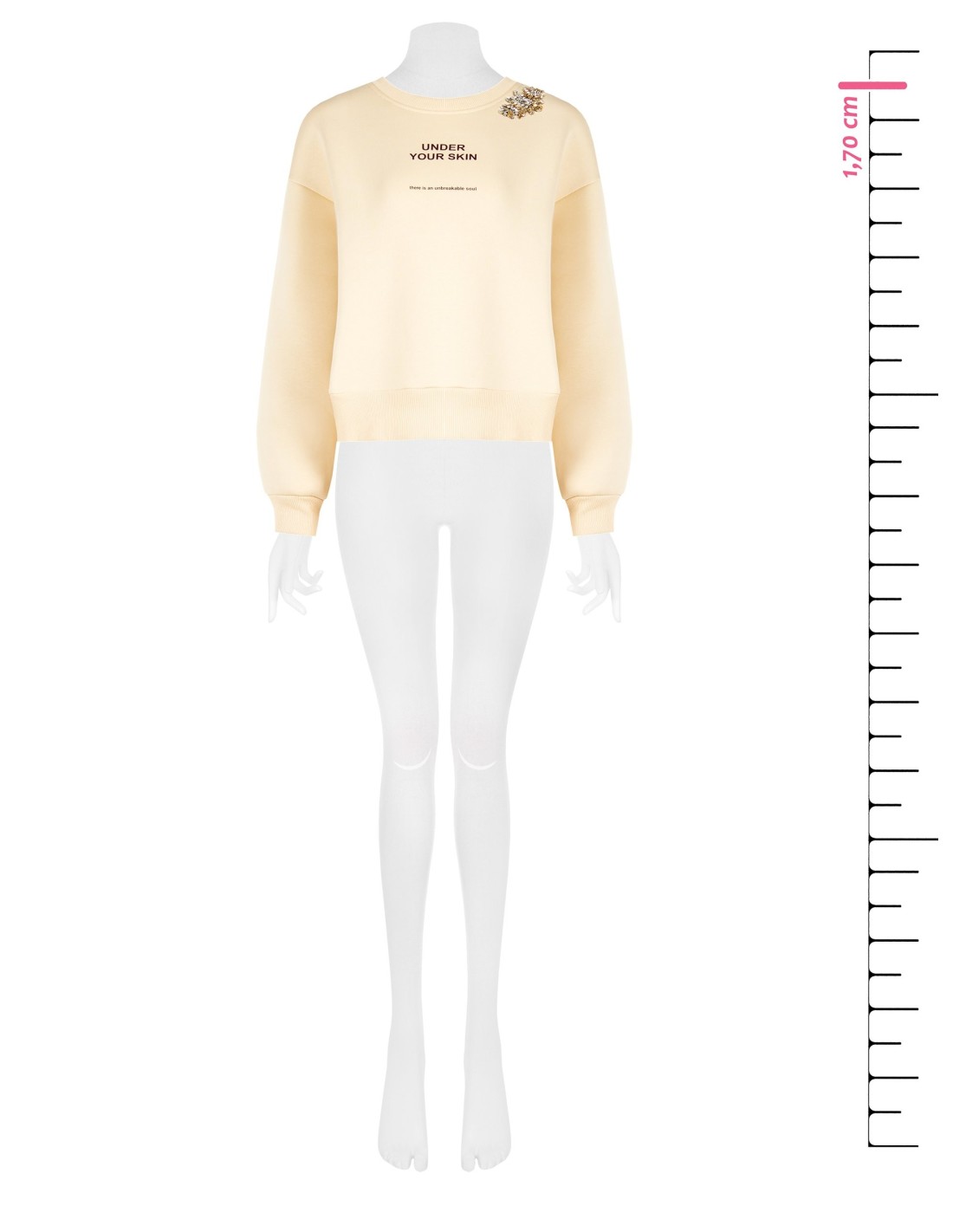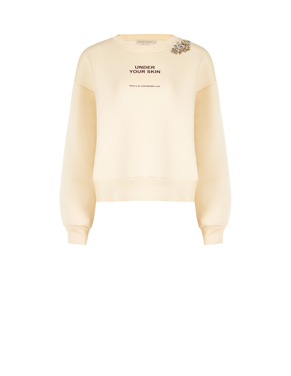 Sweatshirt com Slogan e Detalhe de Cristais Cabochon Rinascimento