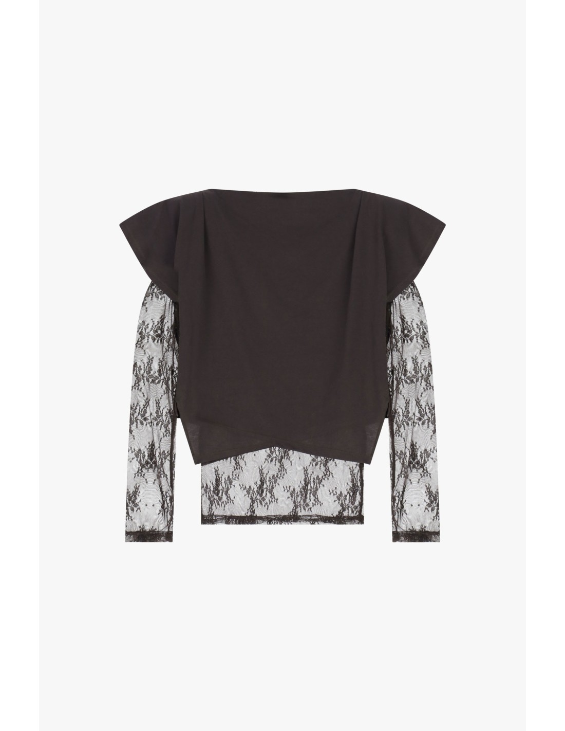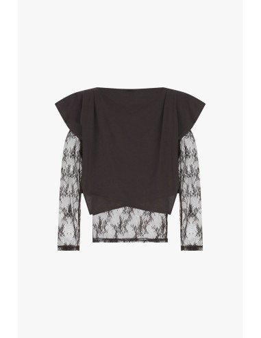 T-shirt de mangas compridas com inserções em renda floral Dixie