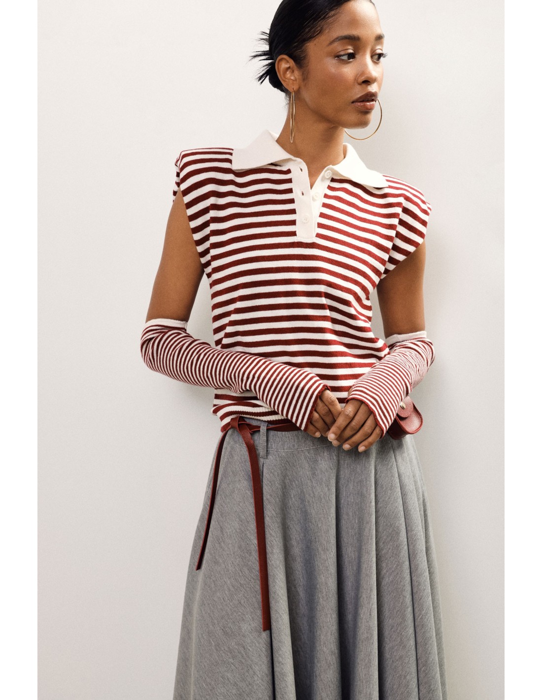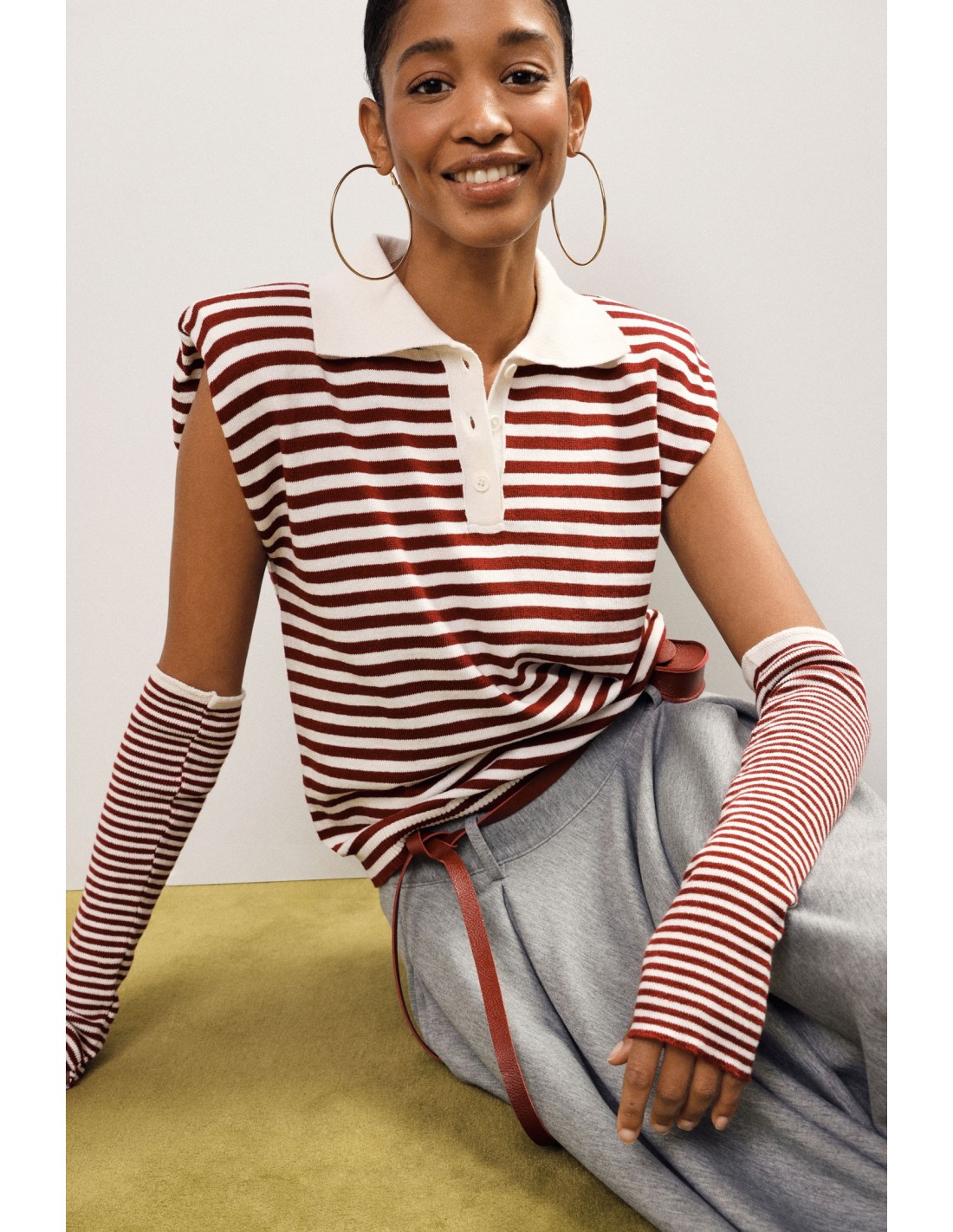 Deixe-se conquistar pelas riscas com esta t-shirt de mangas compridas, perfeita para o dia a dia. A gola contrastante e o abotoamento de três botões acrescentam um toque refinado que combina tanto com jeans como com saia. O corte reto oferece conforto para todas as ocasiões.