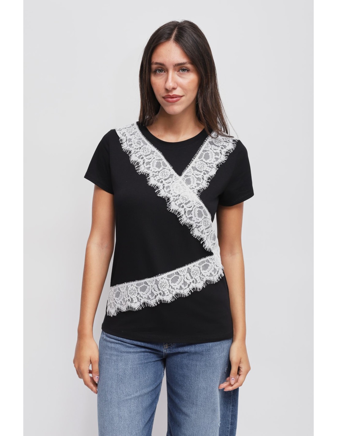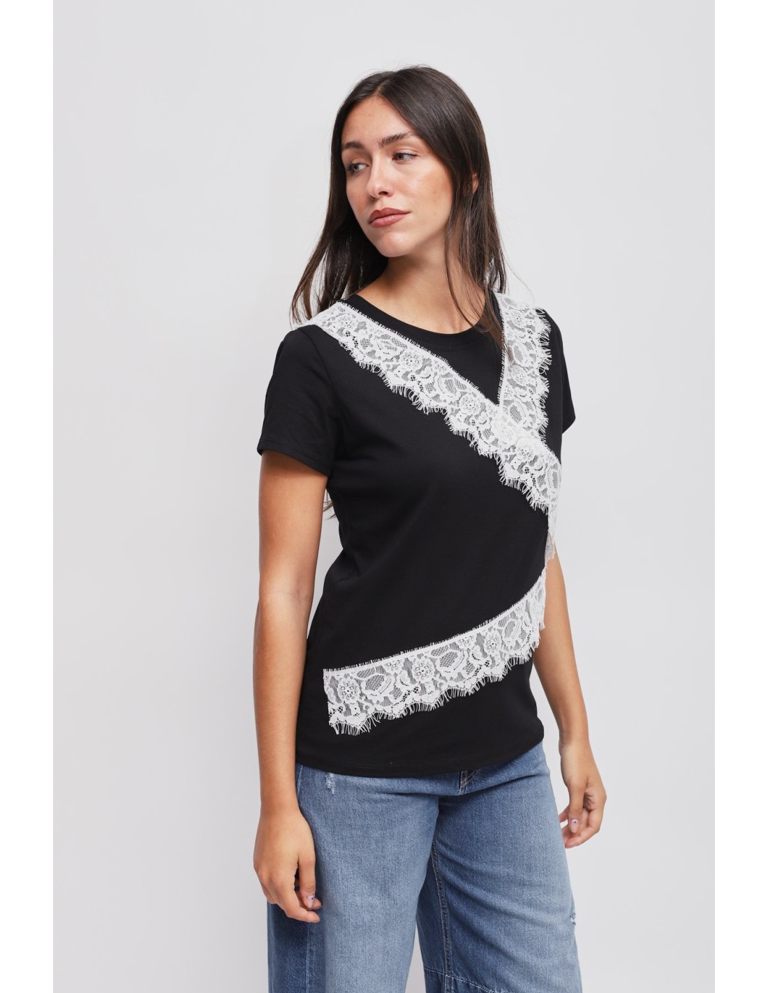 T-Shirt com detalhes em renda Maryley