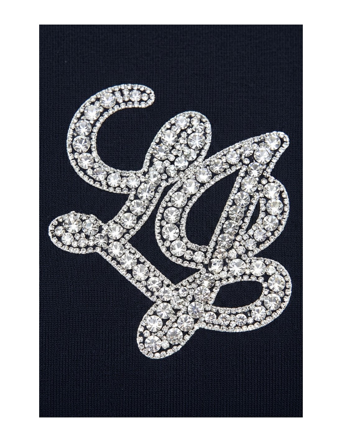 T-shirt com letras do logo com pedras preciosas, decote redondo, cor lisa, mangas curtas.