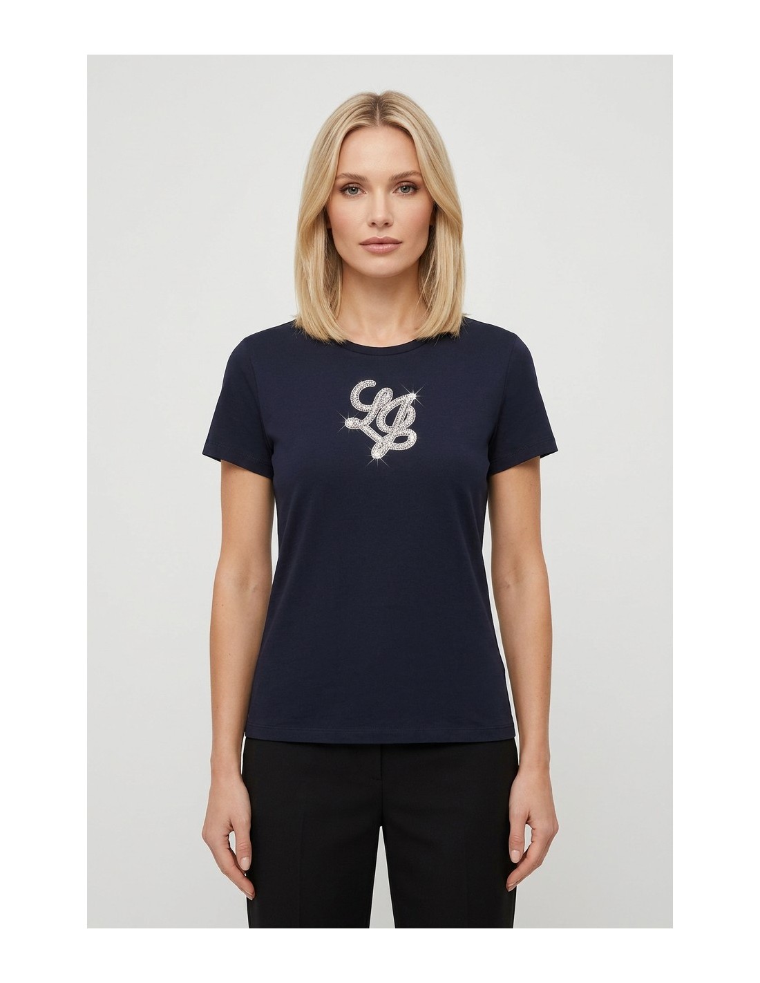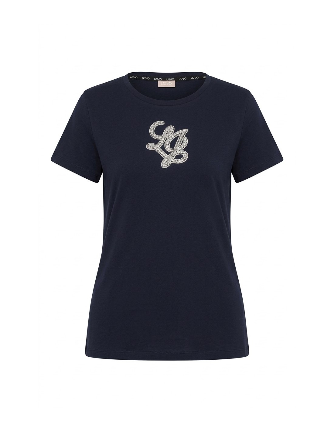 T-shirt com letras do logótipo com pedras preciosas Liu Jo