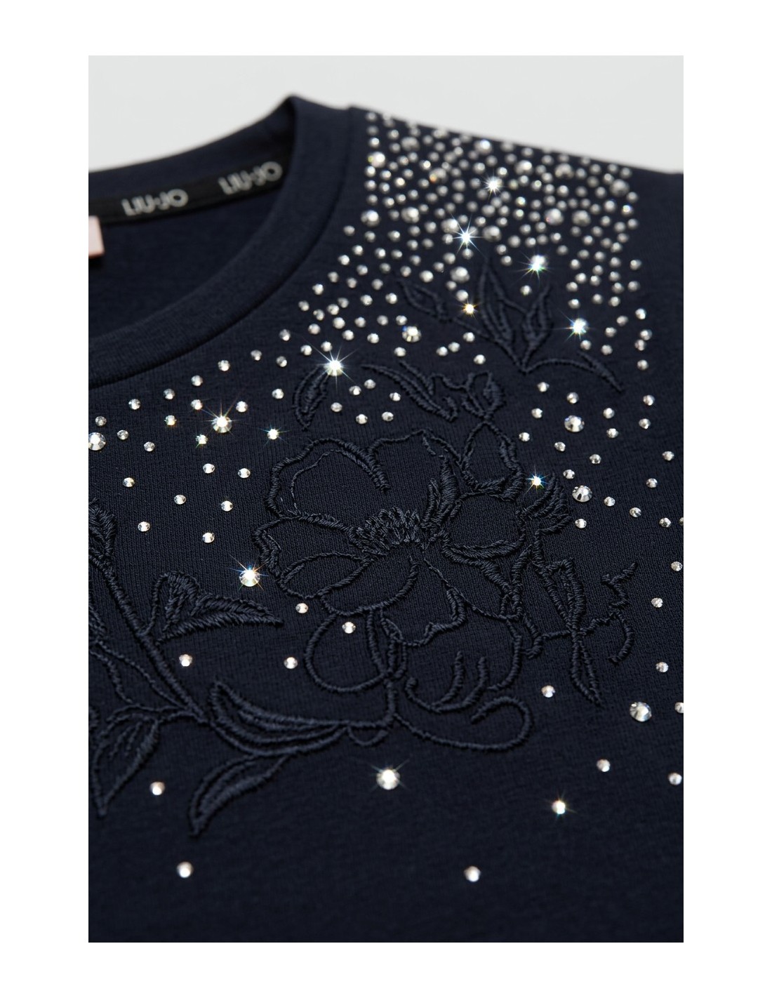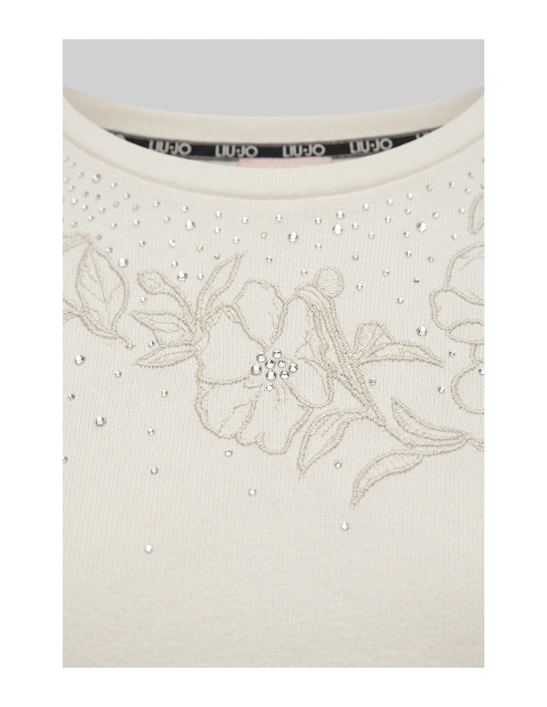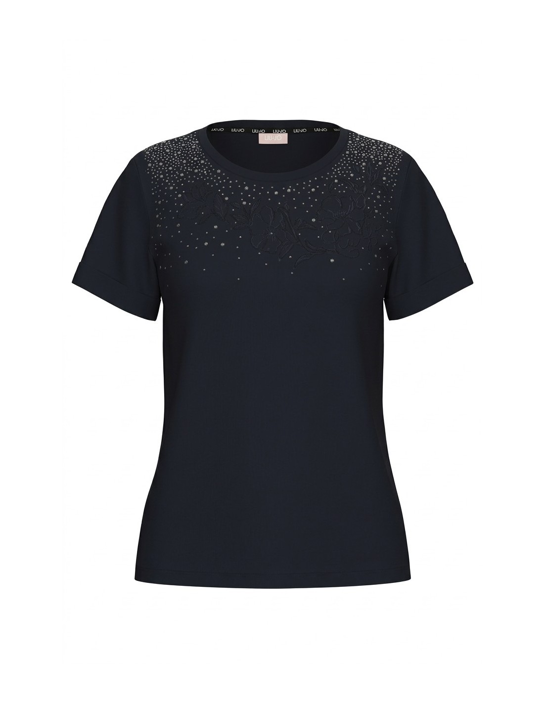 T-Shirt Com Strass E Bordado Floral Liu Jo