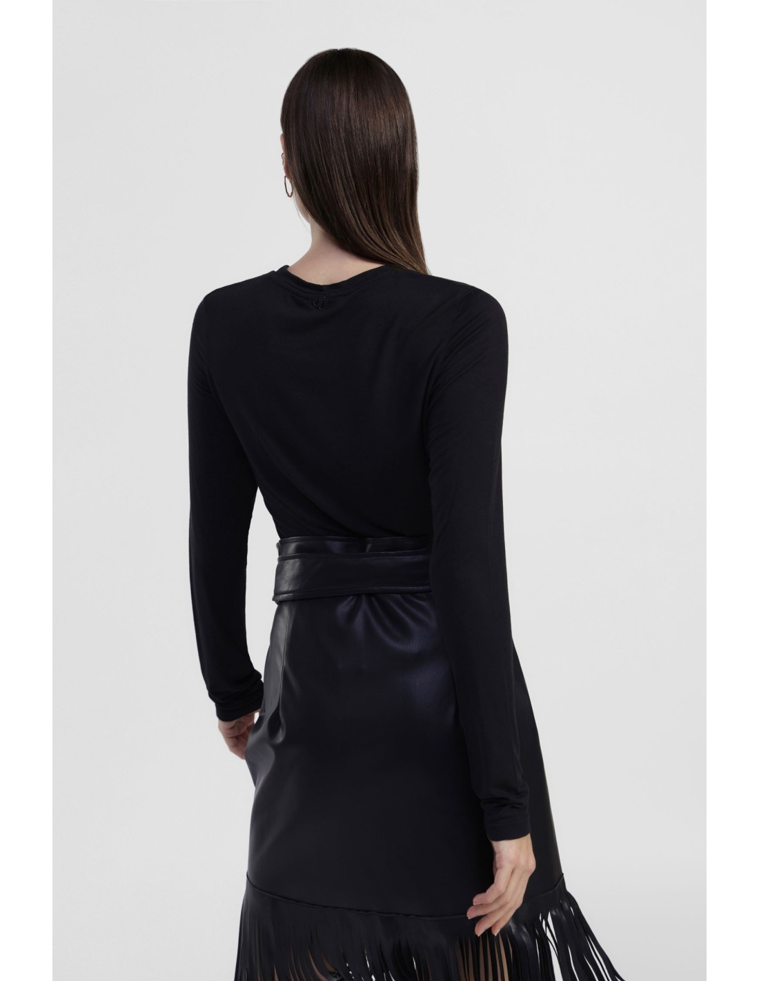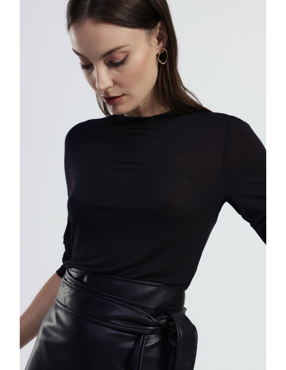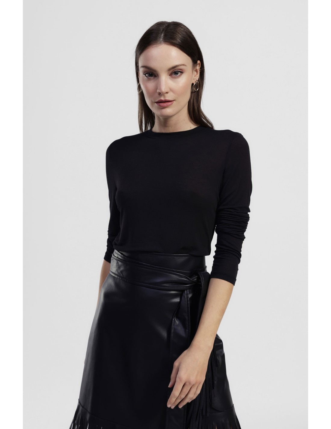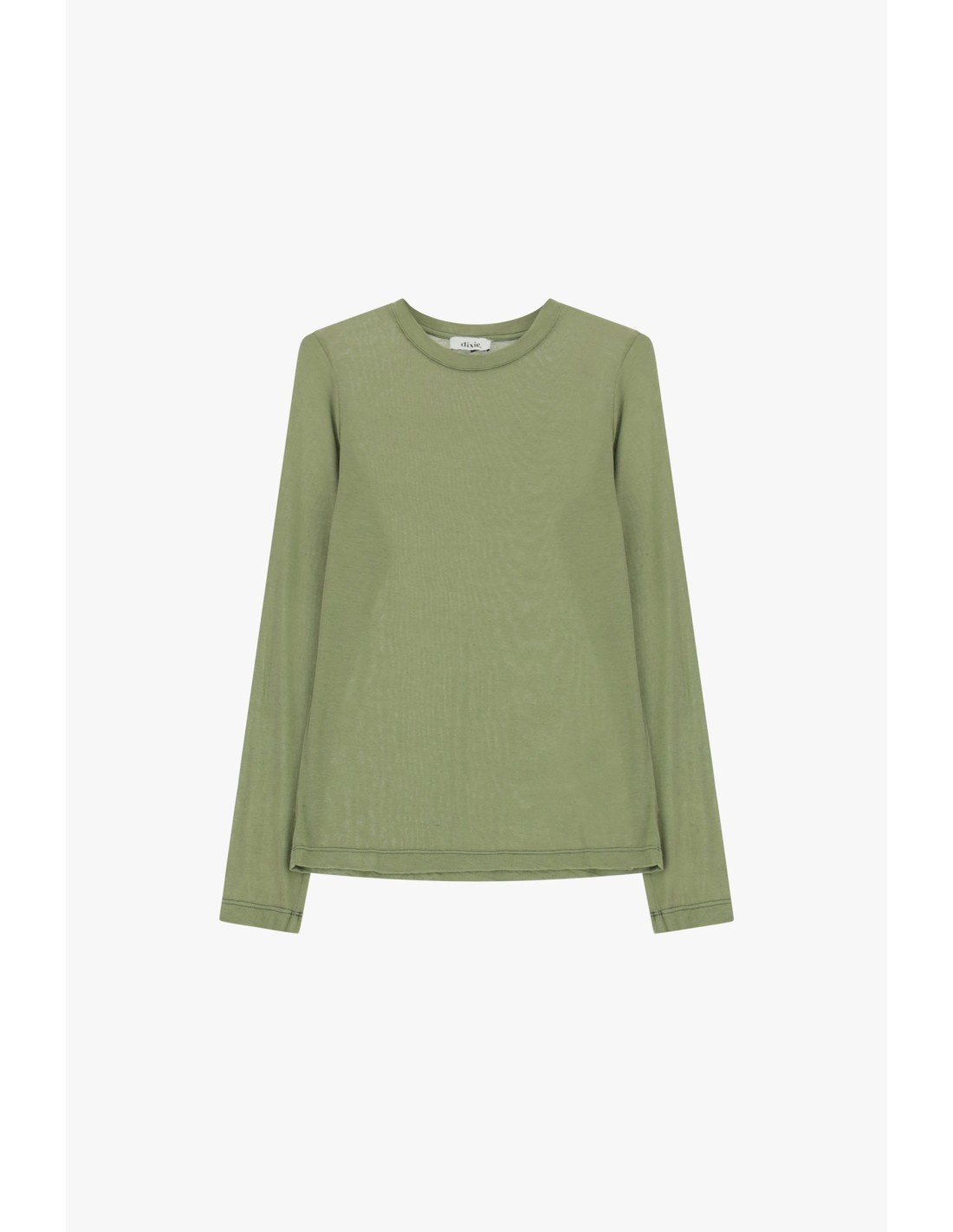 Esta t-shirt de manga comprida com corte reto e gola redonda adapta-se perfeitamente ao dia a dia, também como base para sobreposições. Cada detalhe, desde a linha limpa às costuras visíveis na bainha e nos punhos, acrescenta carácter sem renunciar ao conforto. Ideal para usar sozinha ou por baixo de cardigans e blazers leves.