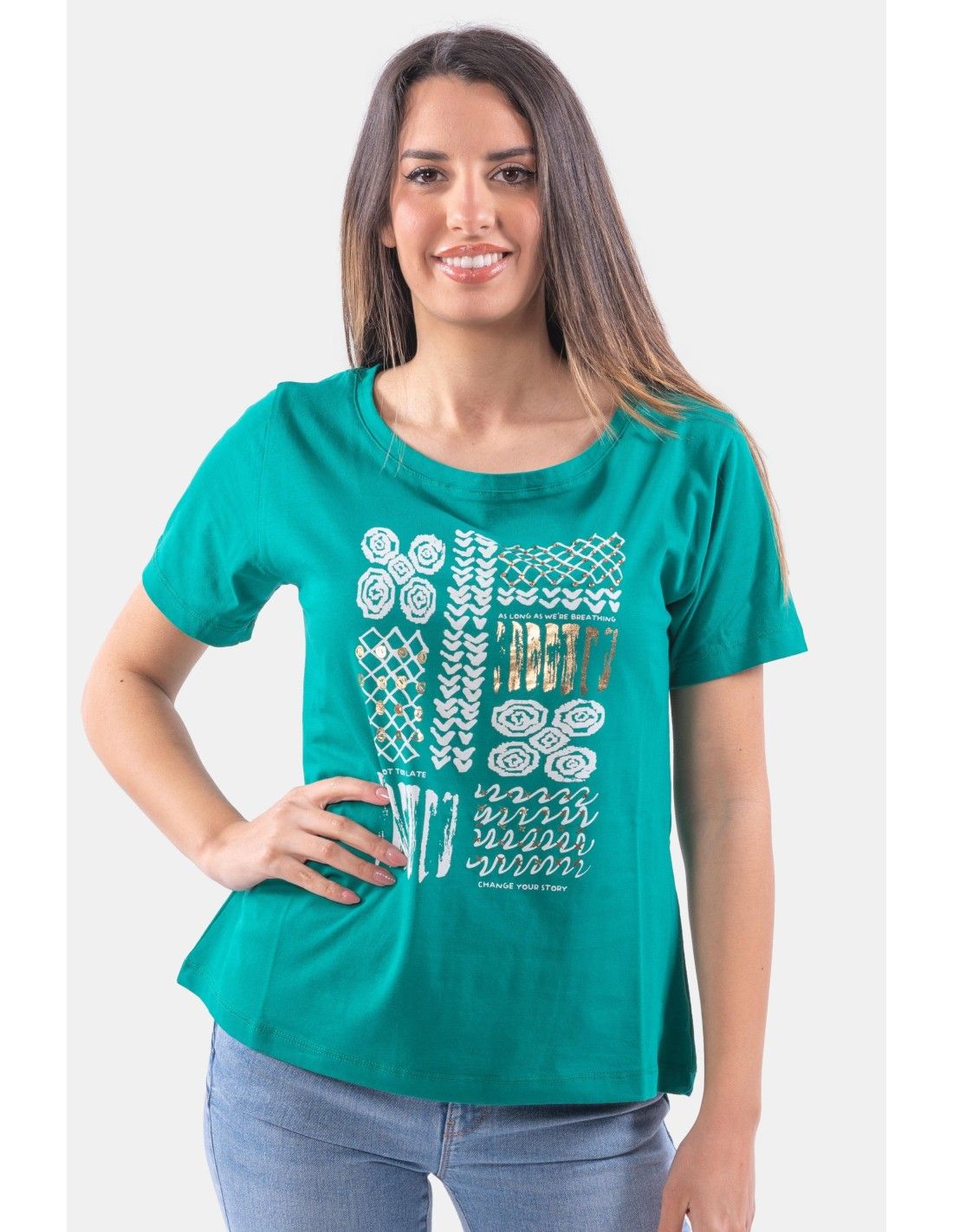 Camiseta de algodão,meia manga,estampada,modelo gola redonda