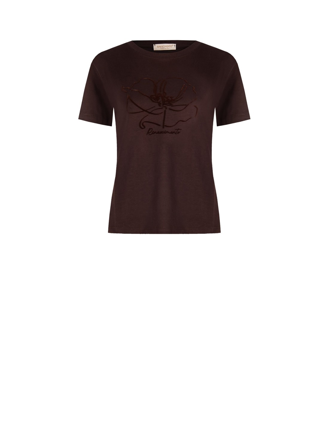 T-Shirt Regular Em Algodão Com Estampa De Flor Flocada Rinascimento