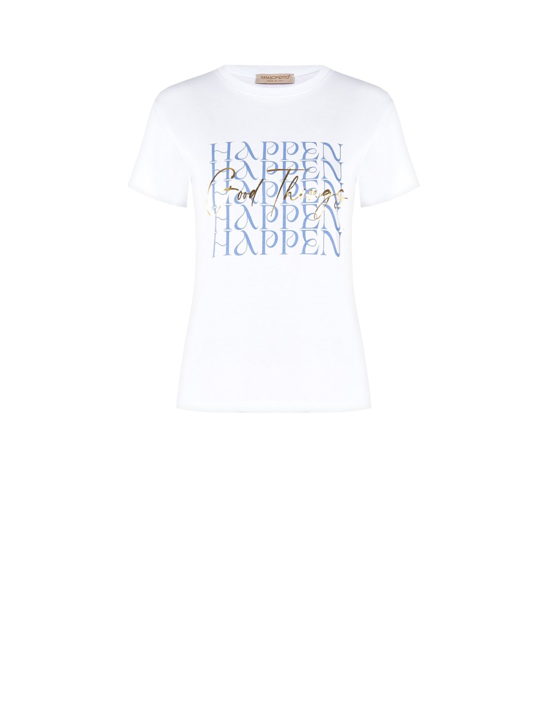 T-Shirt Regular Em Algodão Com Slogan Laminado Dourado Rinascimento