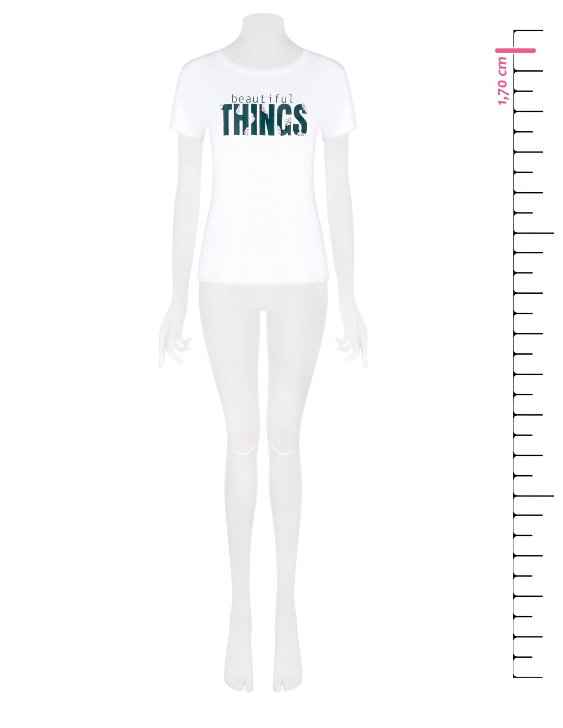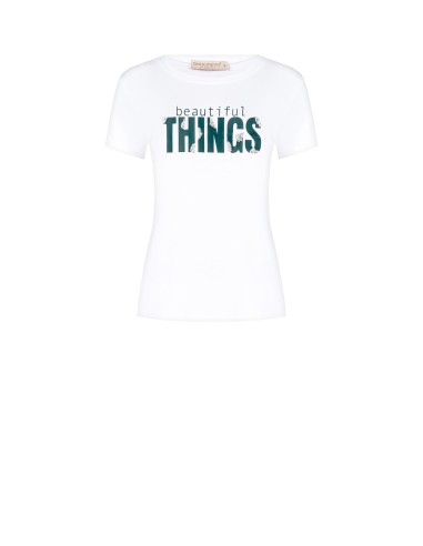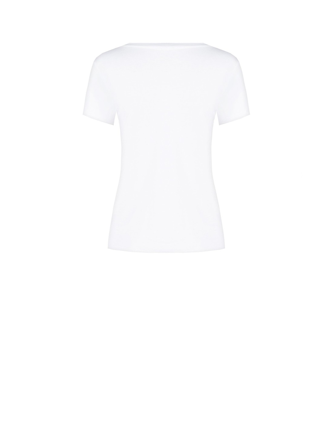 Linhas justas mas confortáveis para definir a silhueta. Confeccionada numa suave mistura de algodão, tem toque liso e elástico. O logo-slogan frontal é iluminado por micro-strass; decote redondo limpo e mangas curtas. Ideal para o dia a dia e para a sexta-feira casual: fácil de combinar por baixo de blazer ou denim. Rinascimento.