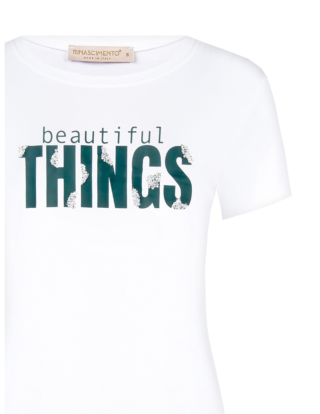 T-Shirt Regular Em Mistura De Algodão Com Estampa De Slogan E Strass Rinascimento
