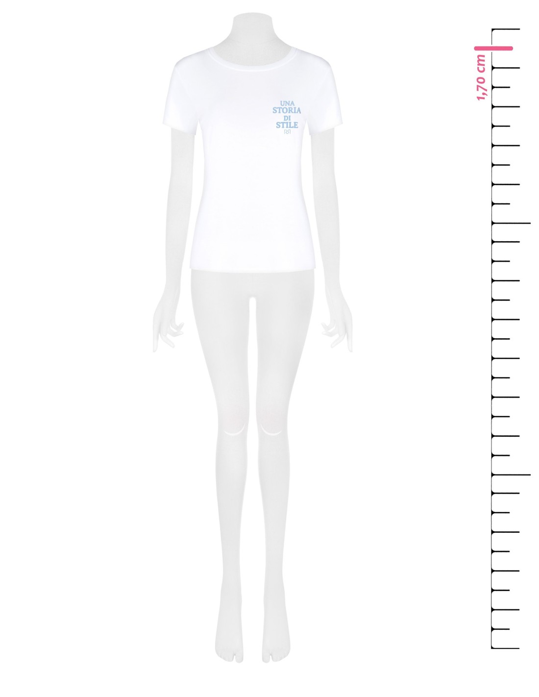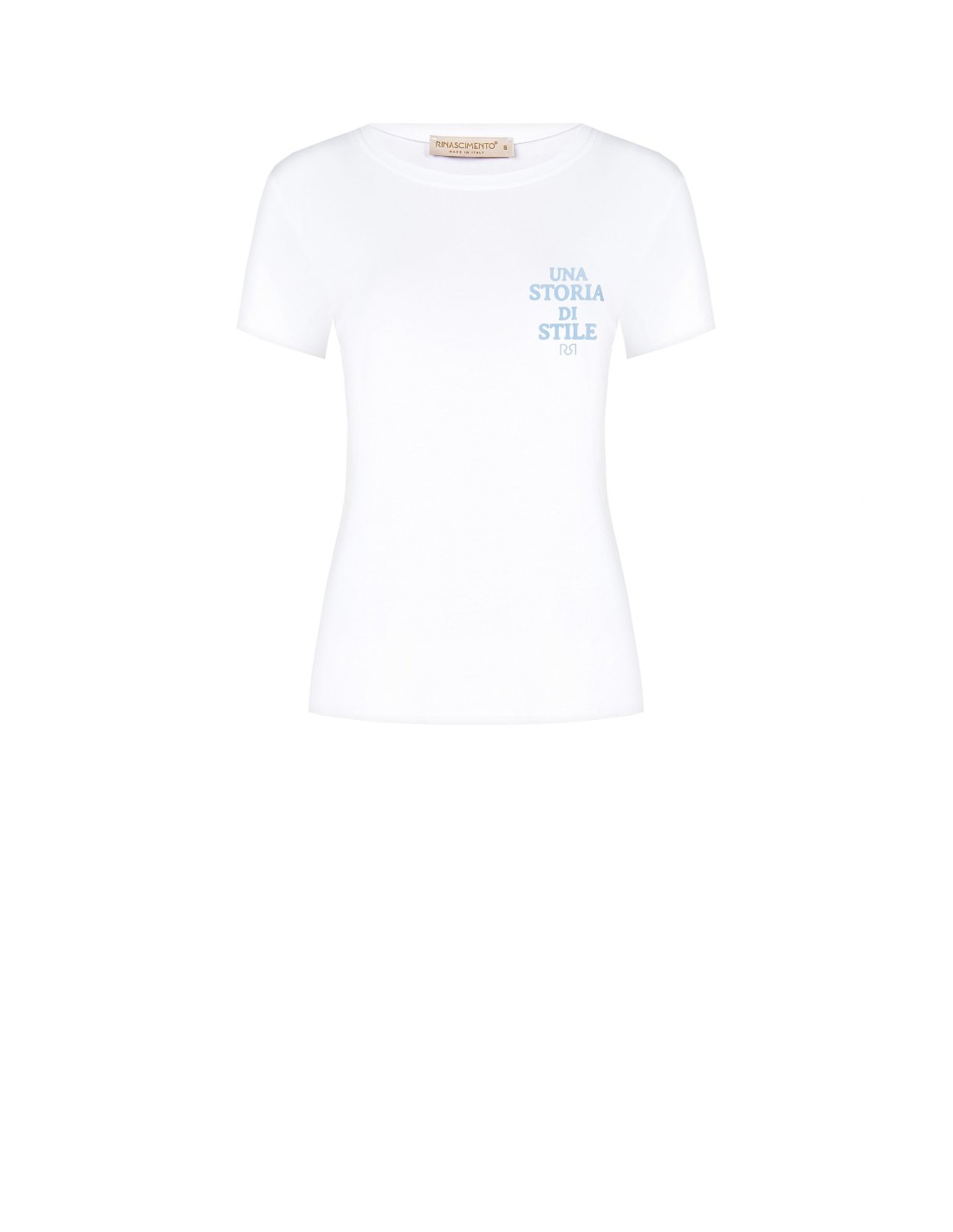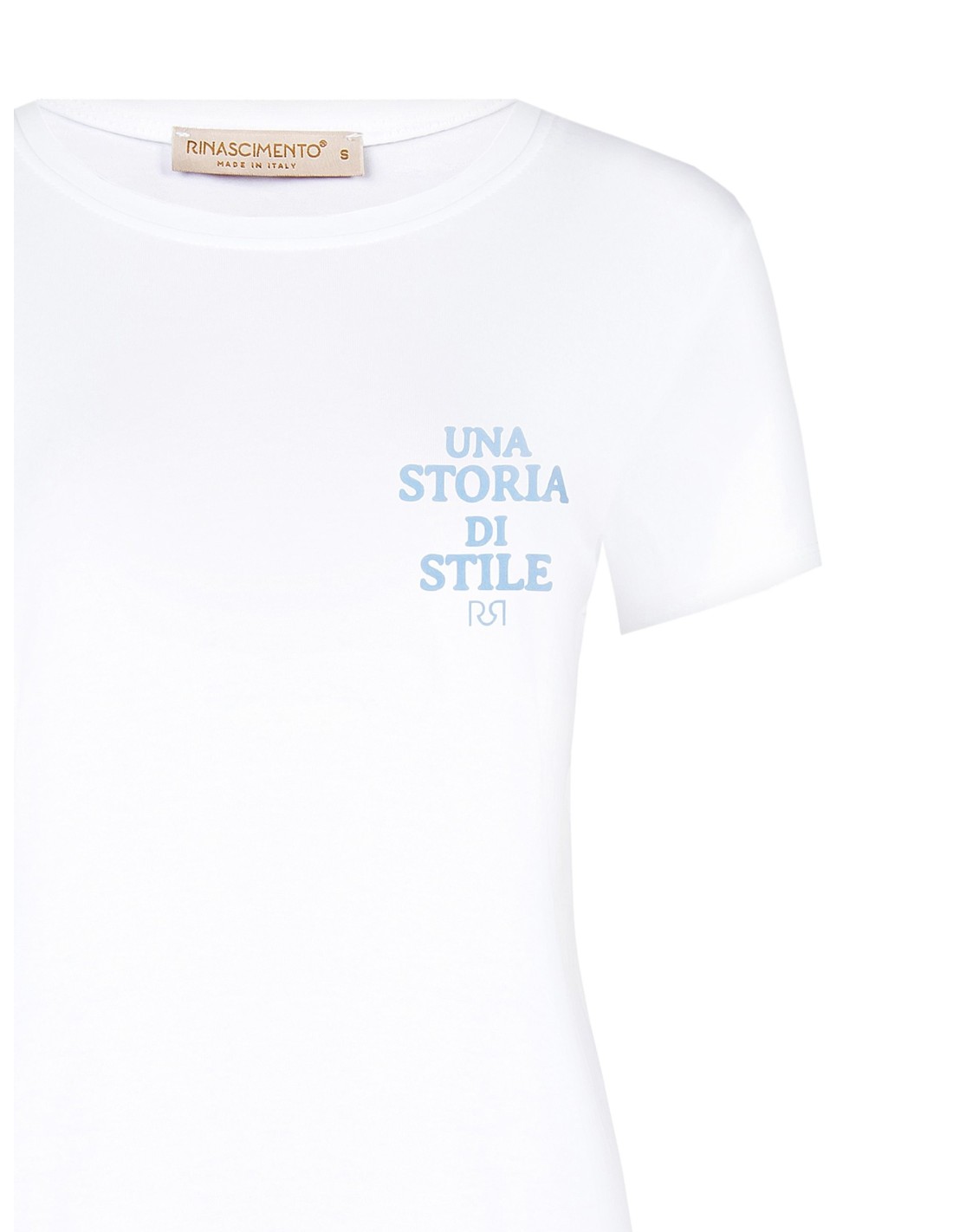 T-shirt de corte regular que valoriza a silhueta sem a apertar. Confeccionada em suave mistura de algodão, agradável na pele. Gola redonda simples e micro estampagem no lado do coração assinada Rinascimento: pormenor discreto que chama a atenção. Perfeita para o dia a dia e para o casual Friday, por baixo de blazer ou com denim.