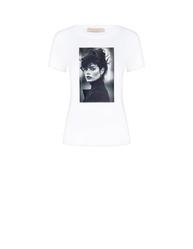 T-shirt de corte regular que realça a silhueta sem apertar. Jersey macio de algodão com uma leve componente elástica para conforto diário. Gráfico fotográfico frontal e decote redondo limpo, detalhes que acrescentam carácter. Perfeita para o dia a dia e para looks smart-casual no escritório.