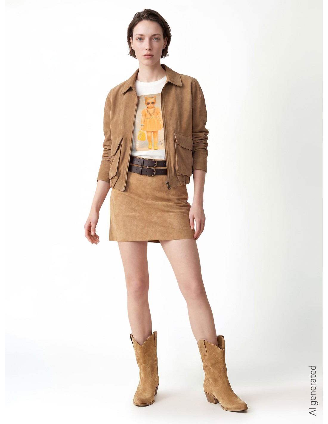 Top em suave jersey de algodão, corte direito que acaricia a silhueta sem marcar. A maxi estampa "fashion girl" iluminada por strass e o decote redondo tornam-no a peça-chave para looks do dia a dia e tempo livre, perfeito com denim ou minissaia.