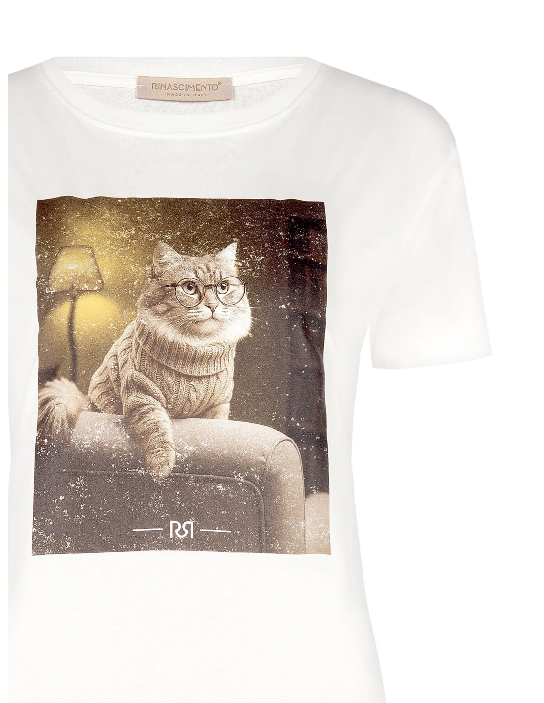 T-shirt Rinascimento de corte reto e feminino, em jersey macio e respirável com toque sedoso. Estampa frontal fotográfica com micro efeito usado e decote redondo limpo. Agradável na pele, proporciona liberdade de movimento e combina com tudo. Ideal para o dia a dia e para o casual Friday.