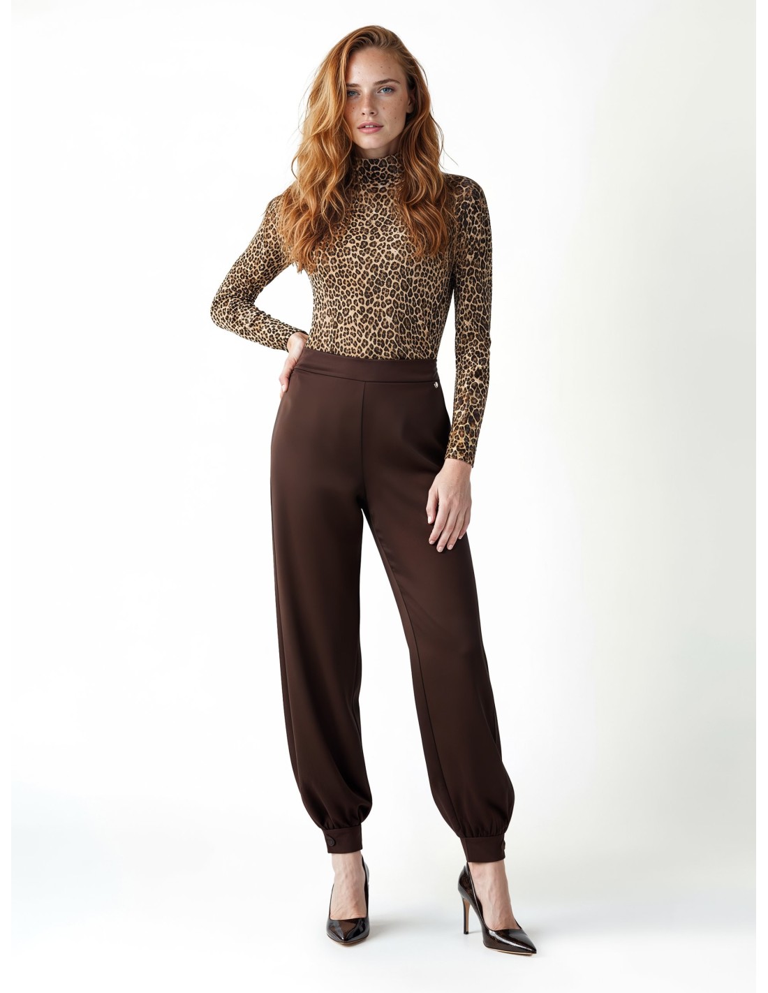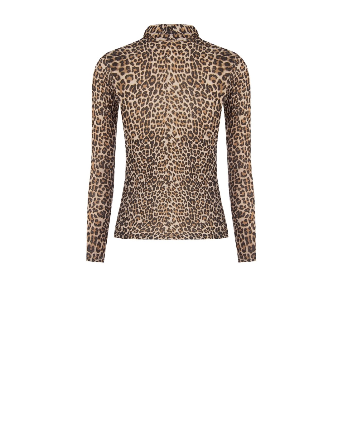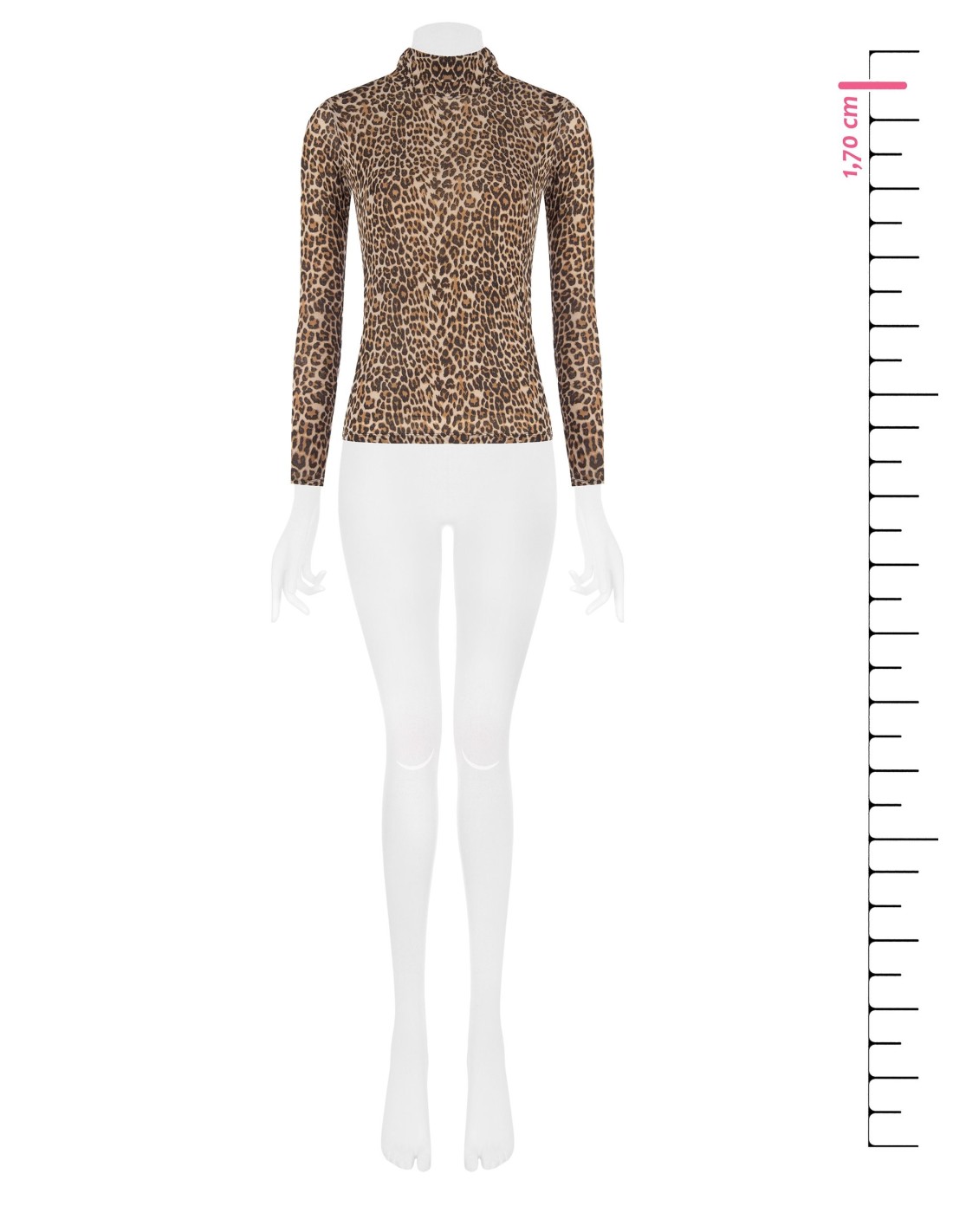 Camisola justa de mangas compridas, com efeito segunda pele que realça a silhueta. Confeccionada em jersey leve e macio com textura animalier. Gola alta macia e acabamentos limpos para máximo conforto por baixo de blazer ou casaco. Perfeita do escritório ao aperitivo, para looks marcantes mas versáteis.