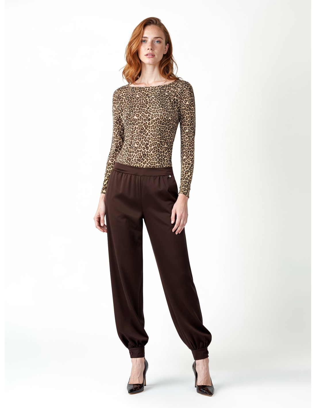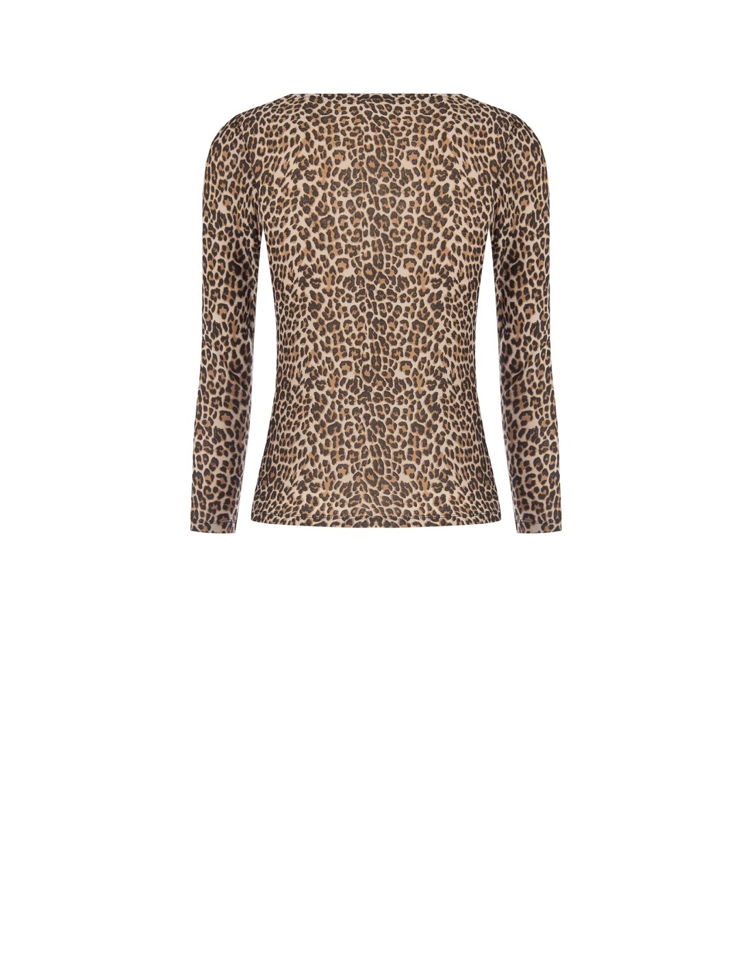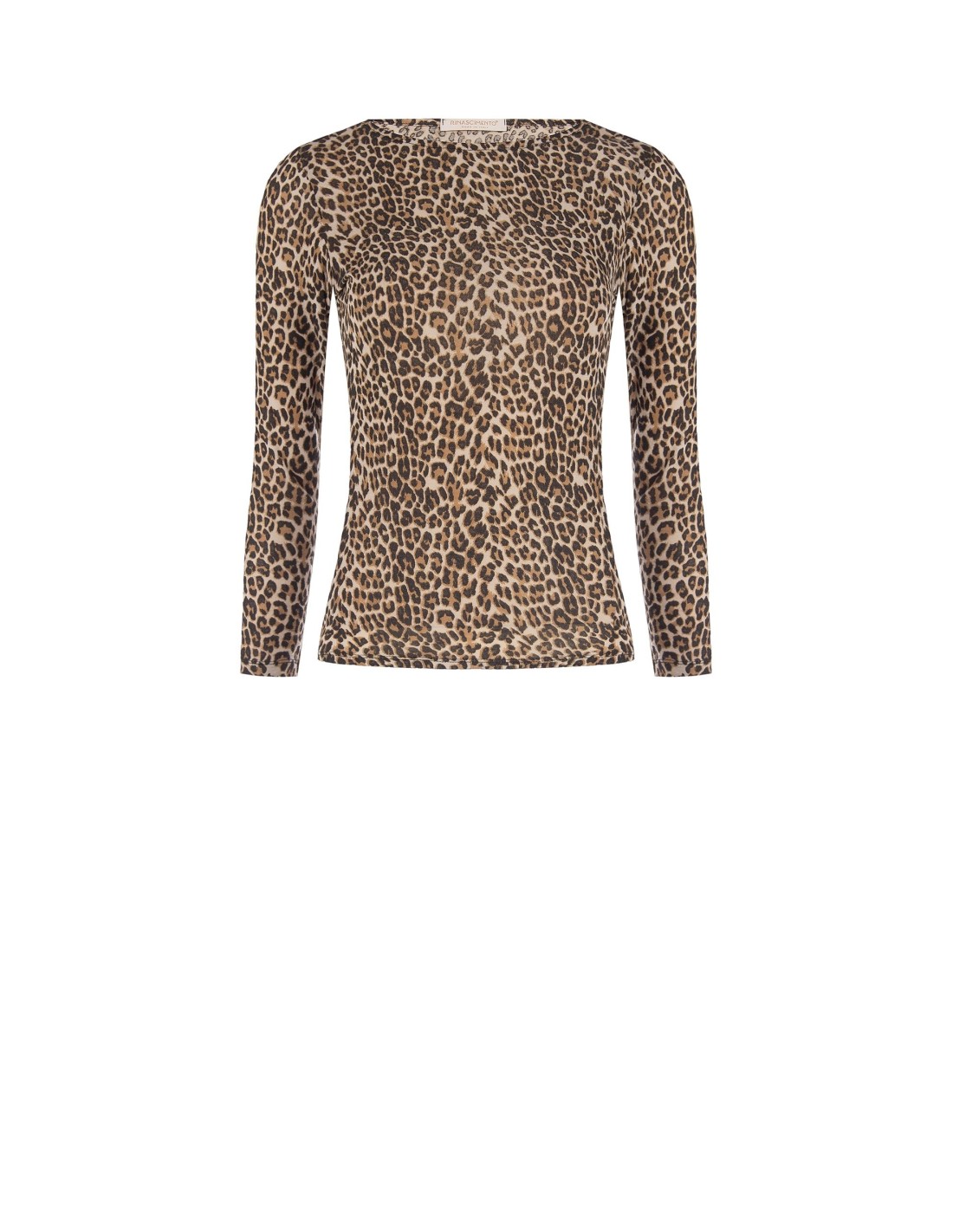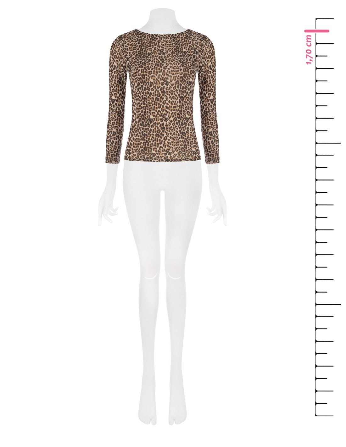 Camisola justa com corte segunda pele, em malha jersey leve e elástica que segue as linhas sem apertar. Estampa animalier em toda a peça, decote redondo suave e mangas compridas. Fácil de vestir por baixo de um blazer ou ganga, ideal para o escritório informal e para o aperitivo: valoriza a silhueta com conforto e personalidade.