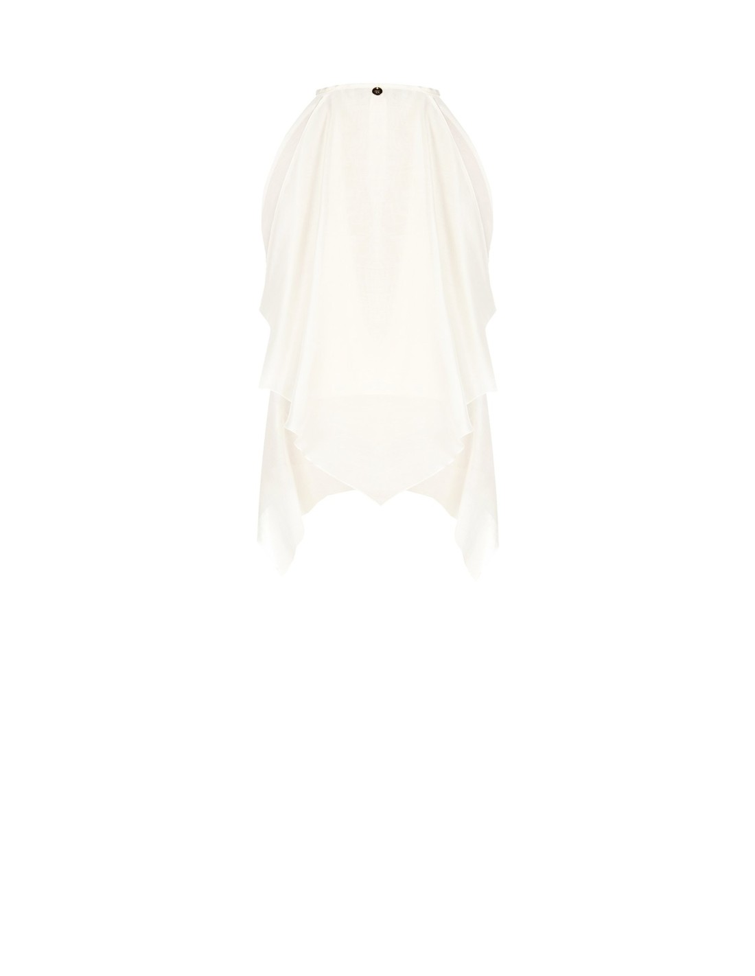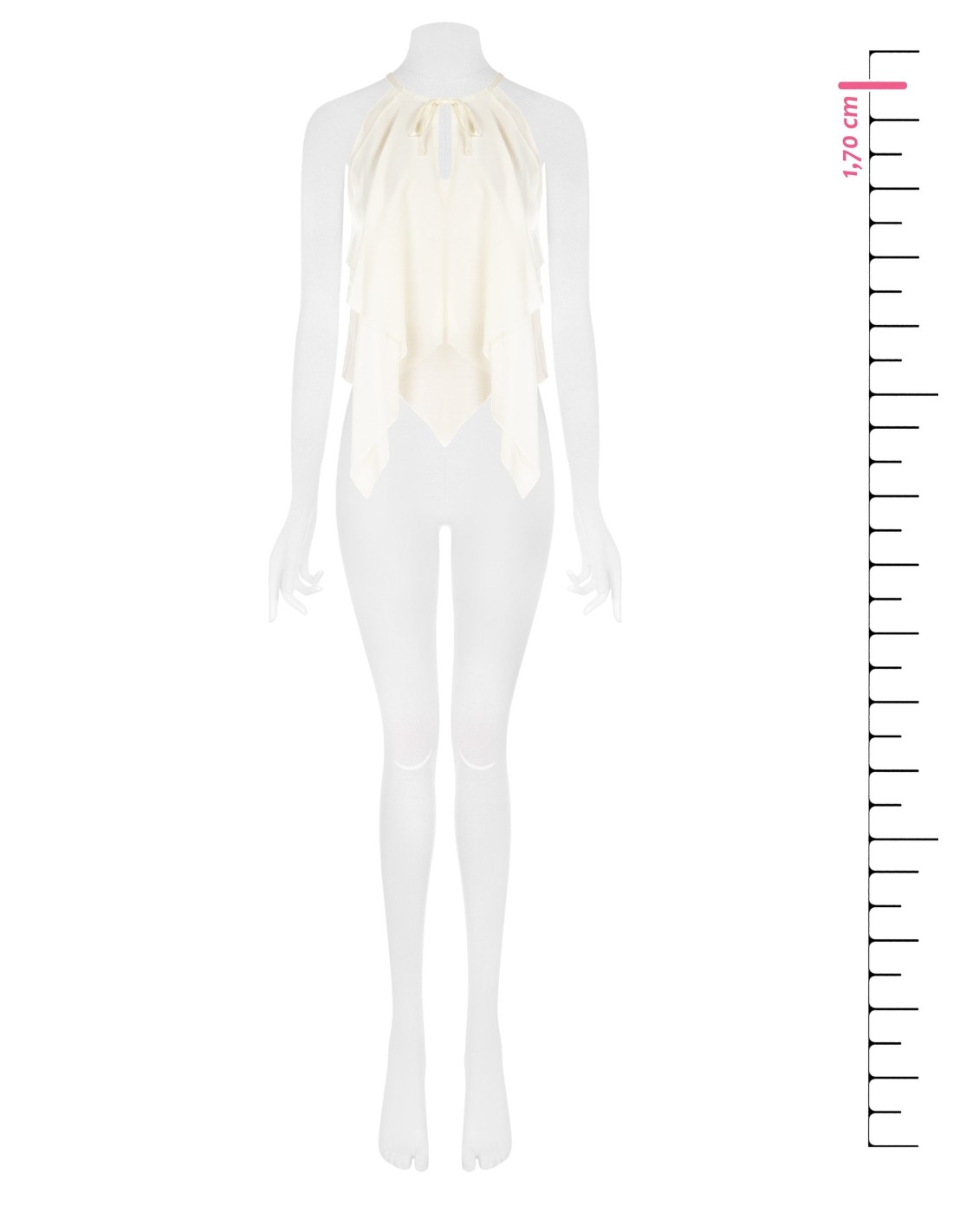 Blusa fluida de caimento suave, em lyocell leve e de textura arejada que acaricia a silhueta com conforto. A gola americana com cordão e o motivo em camadas com bainha assimétrica tornam-na refinada e versátil, perfeita do escritório ao aperitivo.