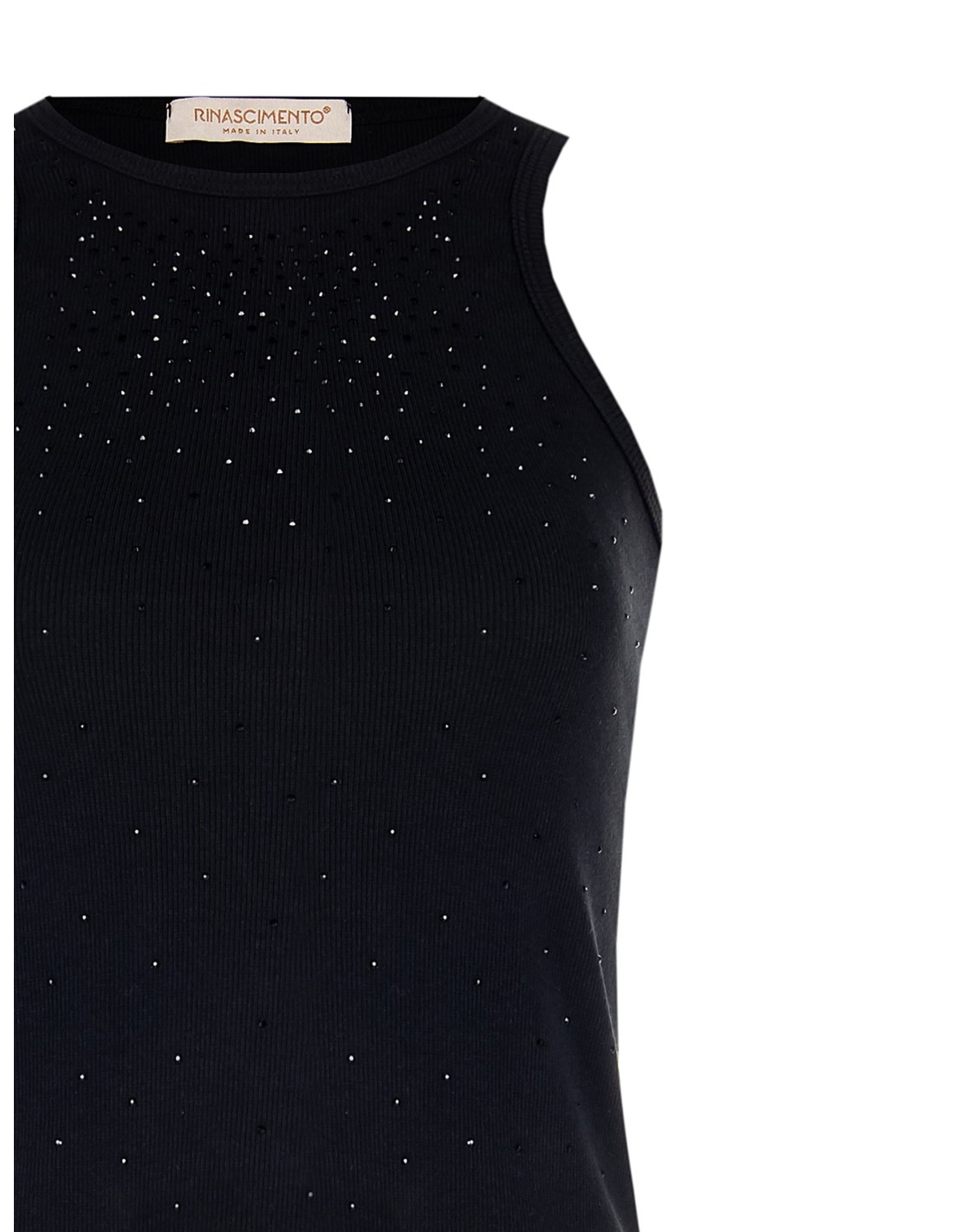 Top Justo Canelado Em Mistura De Algodão Com Strass Tom Sobre Tom Rinascimento