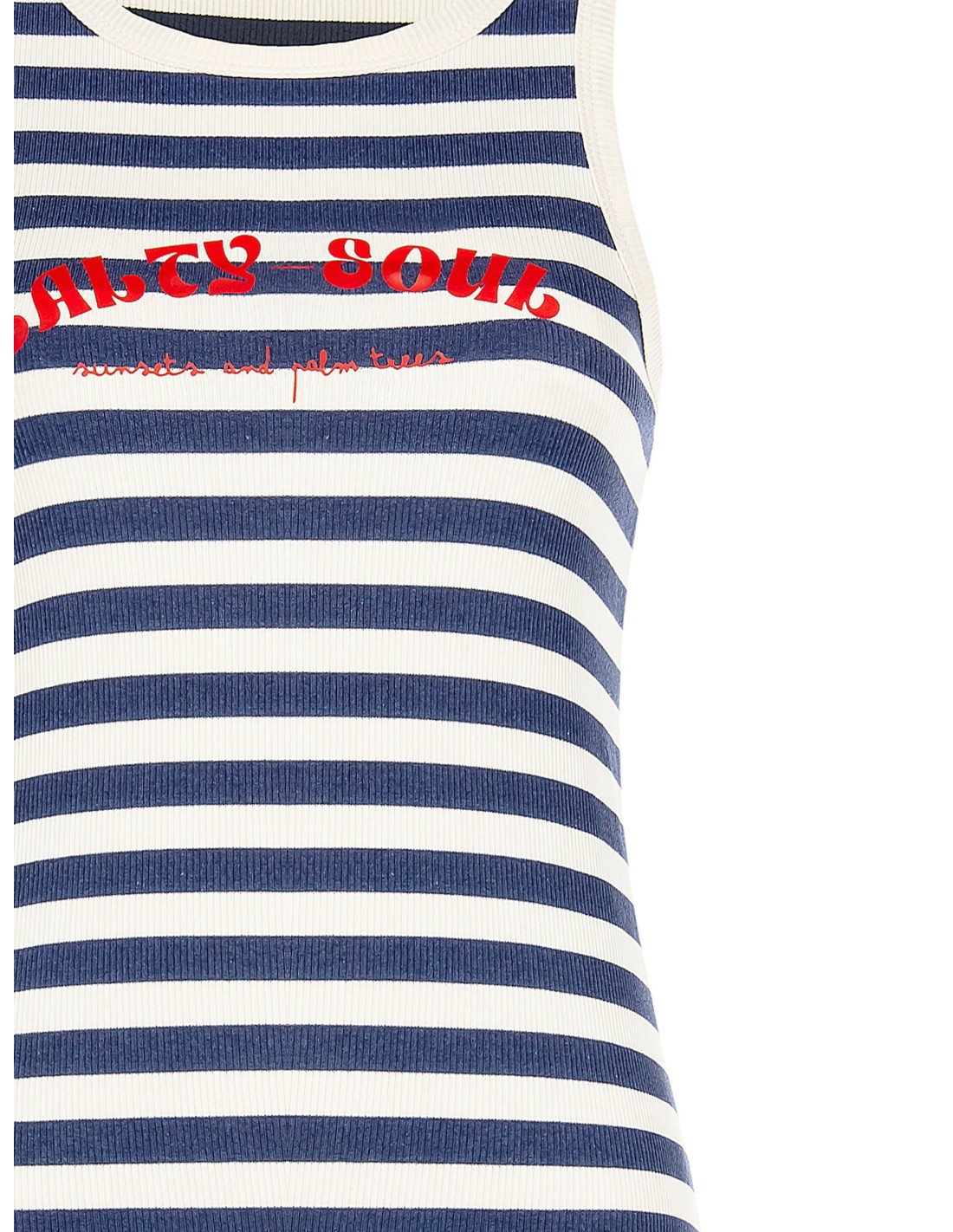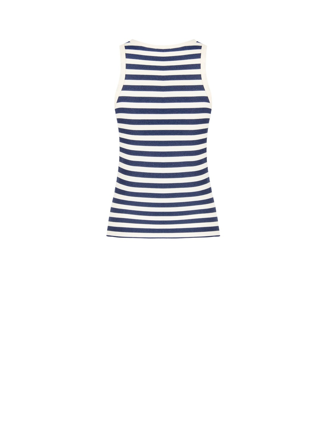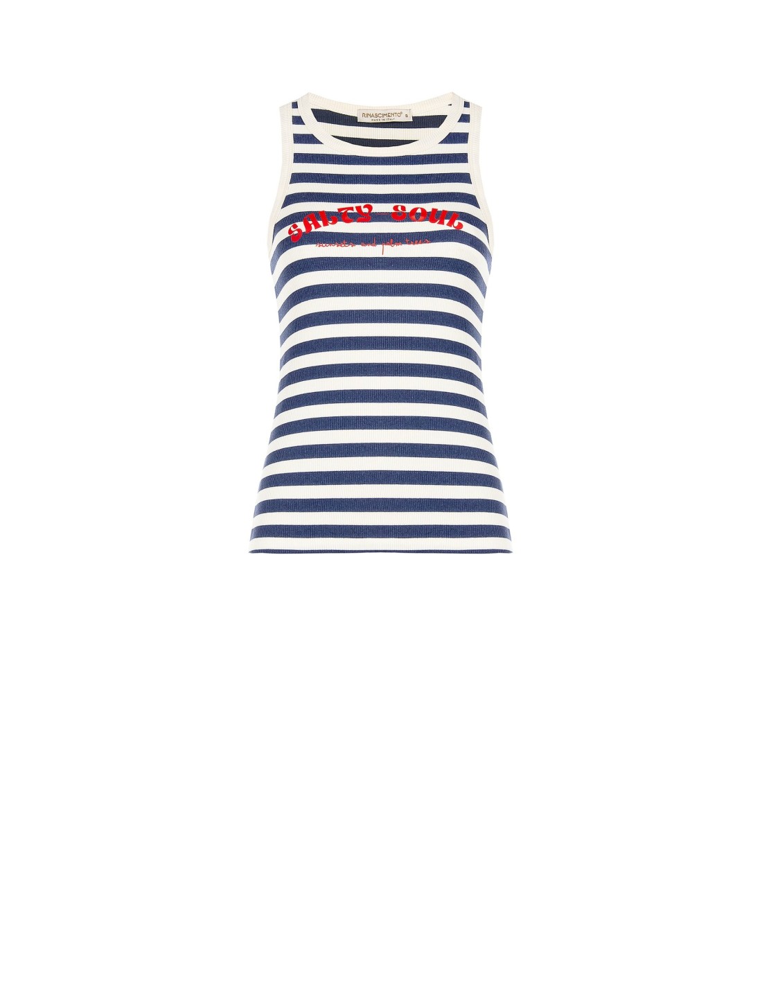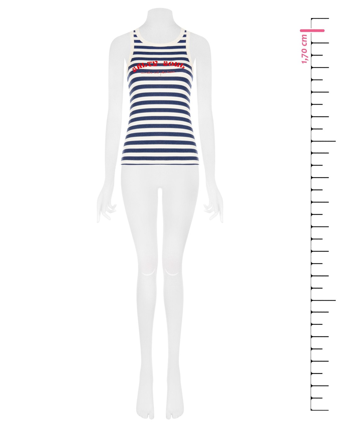 Top Justo Em Algodão Canelado Às Riscas Com Estampa Rinascimento