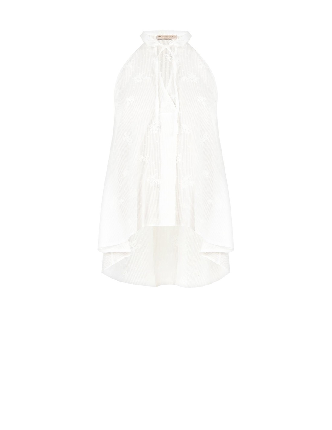 Top Assimétrico Longo Em Algodão Às Riscas Bordado E Ajourado Rinascimento