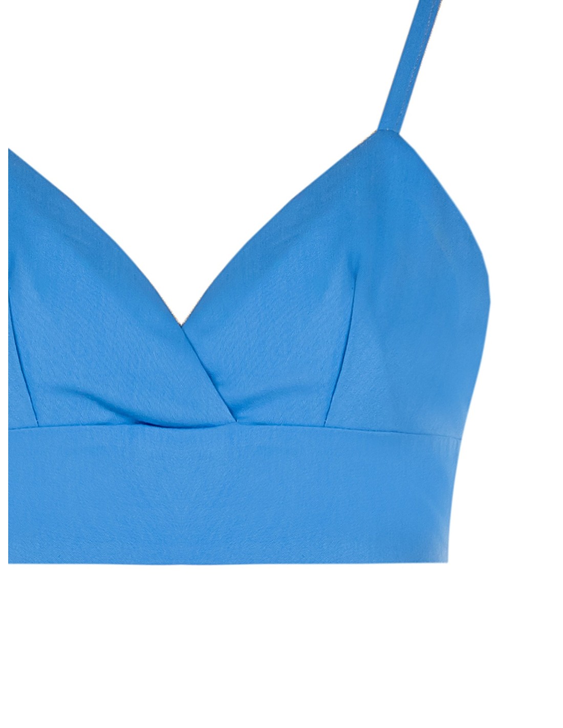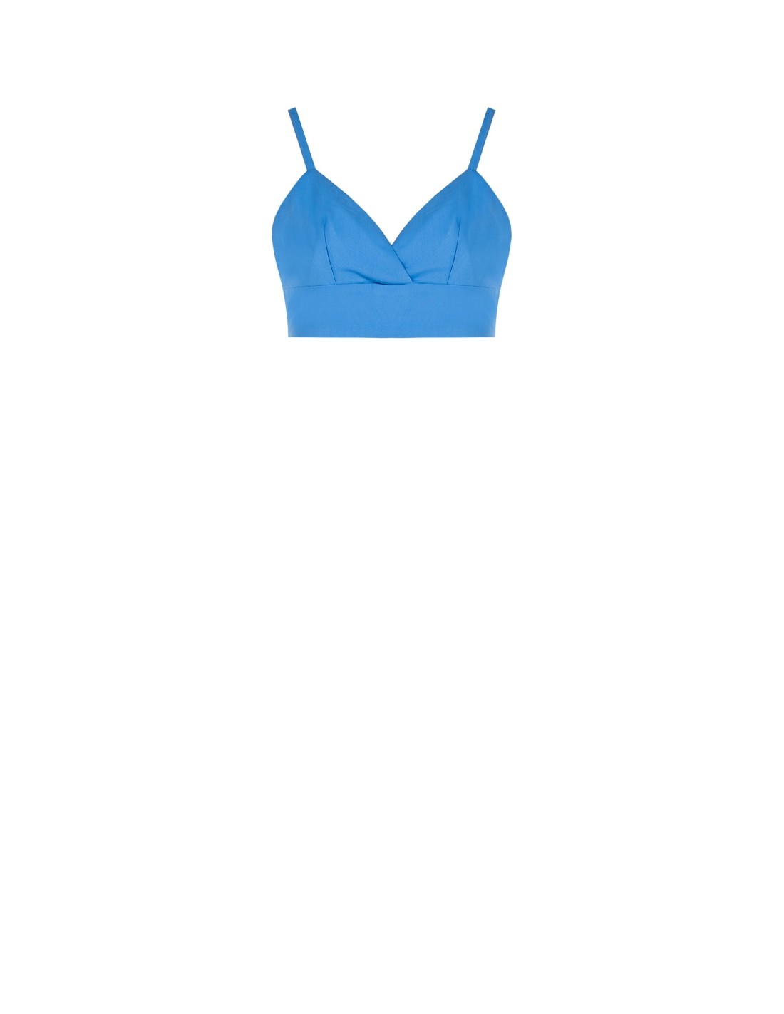 Crop top de corte ajustado e confortável, em tecido bi-stretch de toque macio que segue a silhueta com naturalidade. O decote em V cruzado valoriza o decote, enquanto o elástico franzido na parte de trás garante um ajuste flexível. Perfeito para festas, aperitivos ou looks do dia a dia por baixo de um blazer.