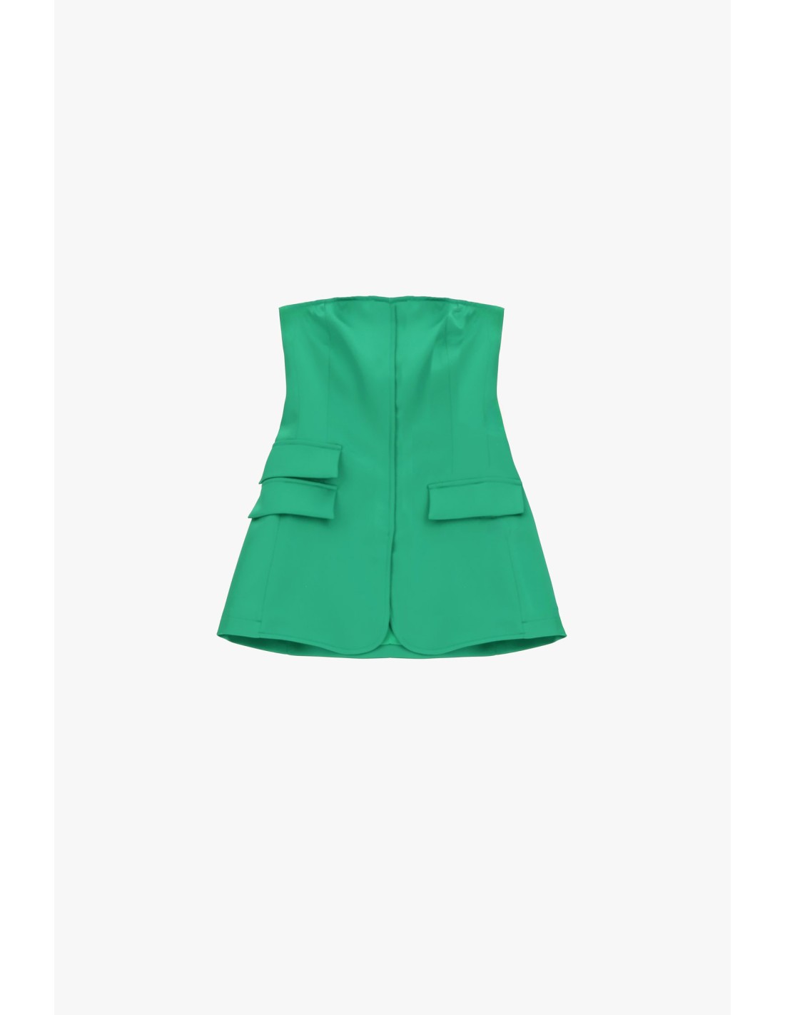 Vive todos os dias com um twist original graças a este top bustier de corte estruturado. Os bolsos aplicados na frente acrescentam personalidade e praticidade, enquanto a linha justa e evasê na base valoriza a silhueta. Perfeito para usar em ocasiões especiais ou para dar personalidade ao look do quotidiano.