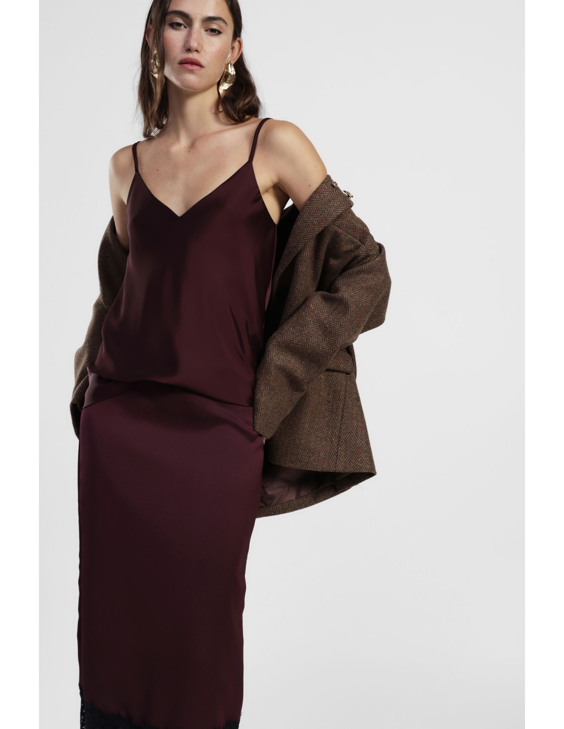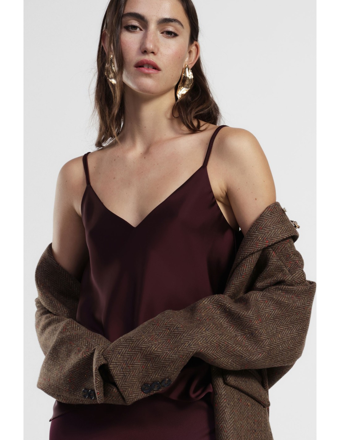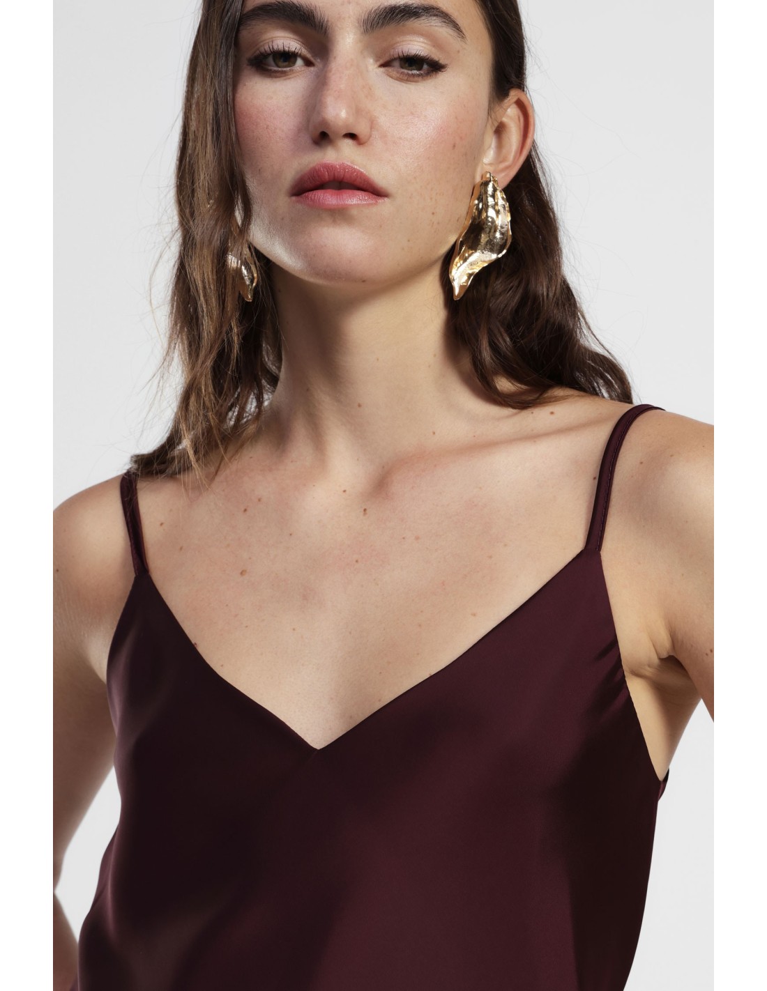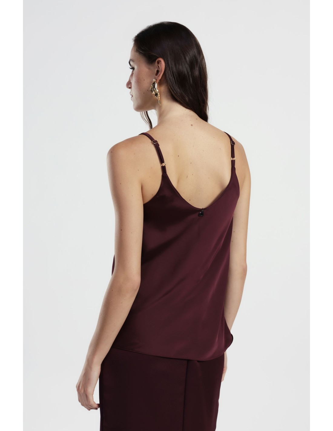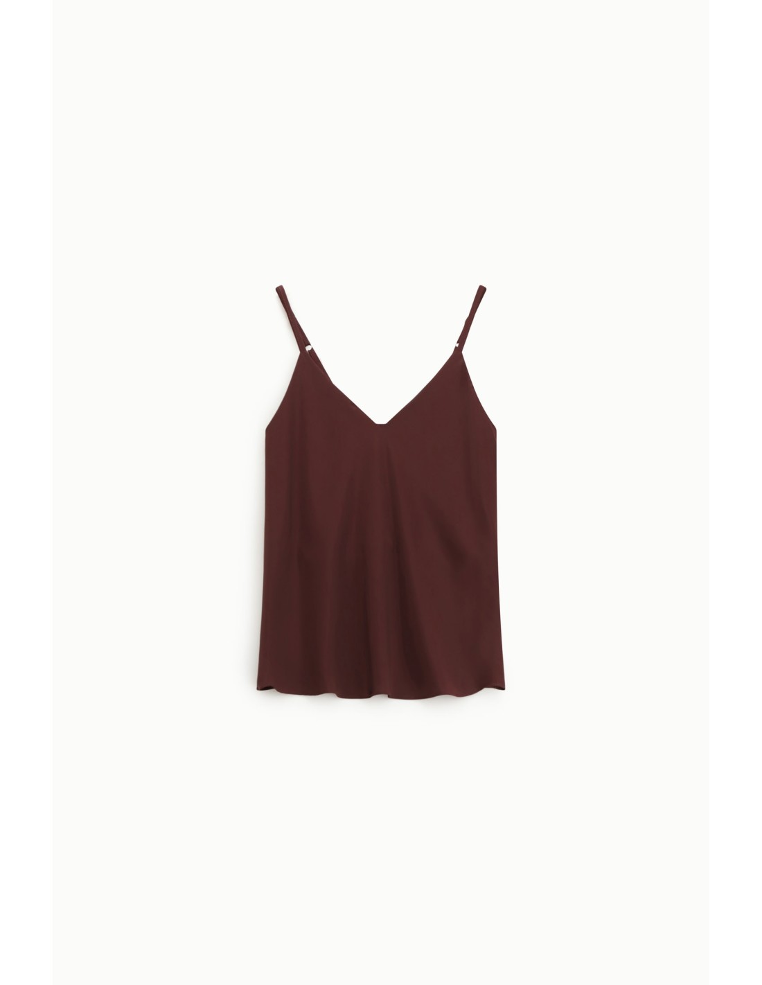 Perfeito para qualquer altura do dia, este top com alças finas e decote em V direito é fácil de combinar e acrescenta leveza ao look. O corte solto permite movimentos livres e o corte minimalista torna-o ideal sobre calças de ganga ou por baixo de um casaco leve.