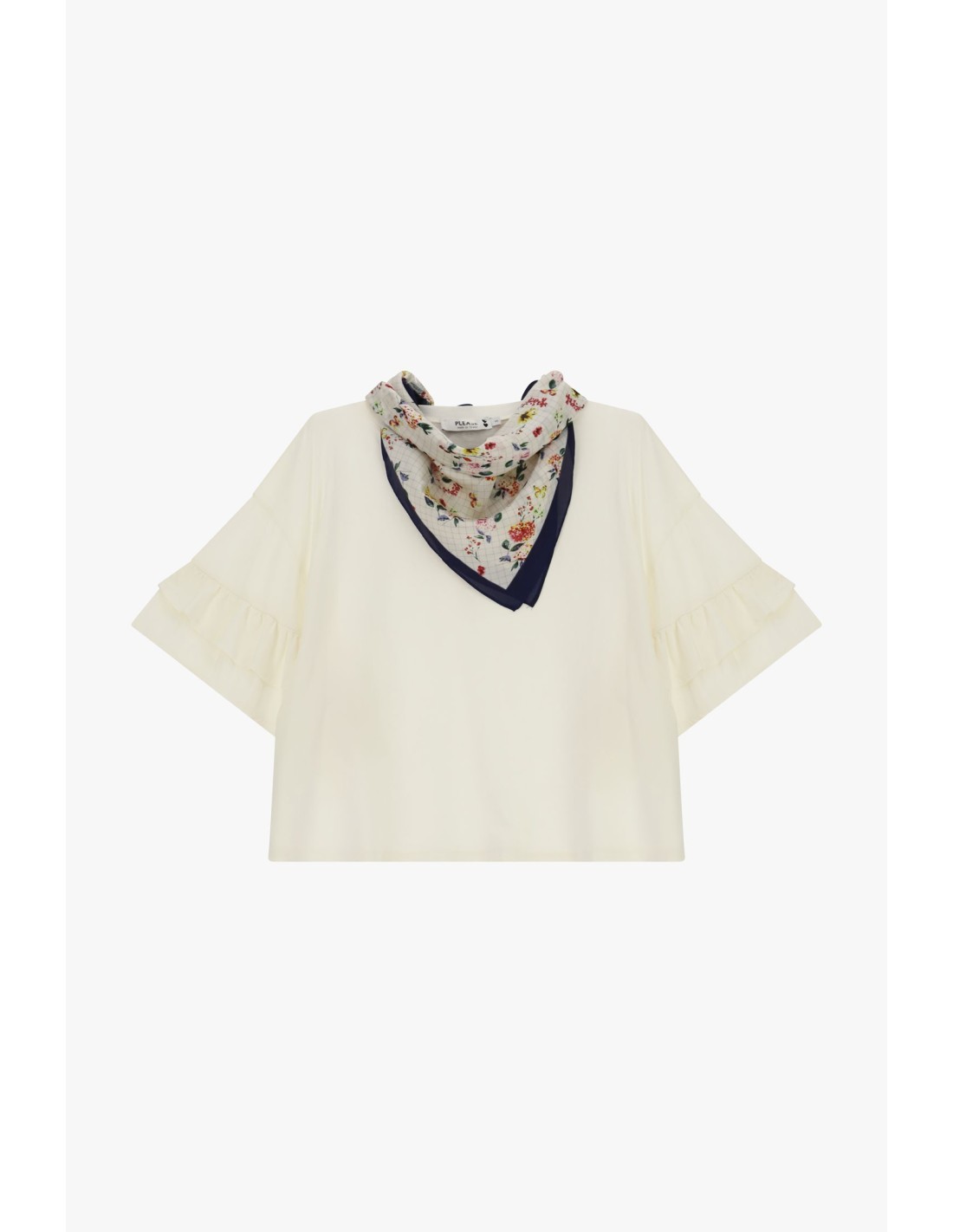 Pensado para quem gosta de misturar todos os dias, este top brinca com mangas curtas decoradas com folho duplo que dão movimento e carácter. O corte reto combina facilmente com os teus looks preferidos, do jeans às calças de alfaiataria. Perfeito para um estilo casual que não abdica de se fazer notar mesmo nos detalhes.