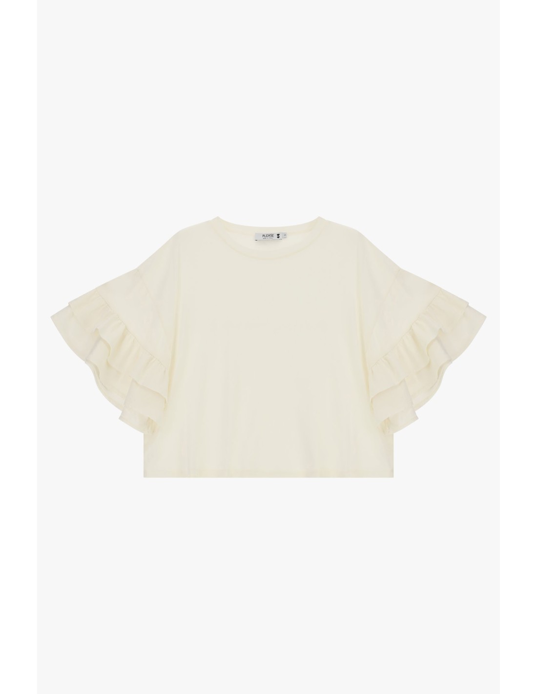 Top Com Mangas Curtas, Folhos E Linha Reta Please