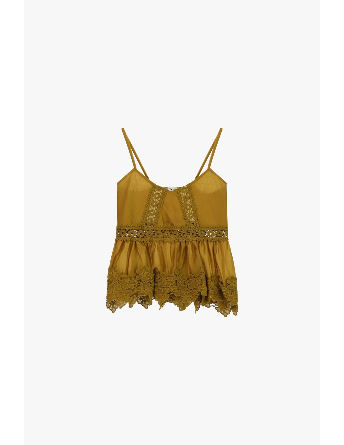 Top com alças finas e detalhes em renda Dixie