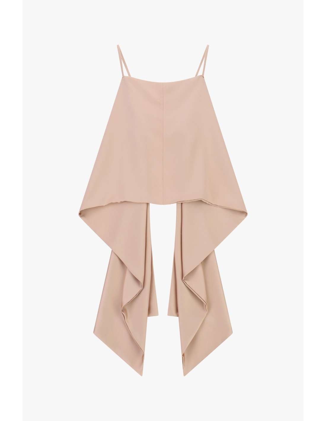 Um top que surpreende pelo corte original: as alças finas conferem leveza enquanto a parte frontal se abre num drapeado assimétrico que capta a atenção. Fácil de combinar com calças ou saias, foi pensado para quem gosta de se destacar todos os dias com detalhes fora do comum e um toque feminino que não passa despercebido.