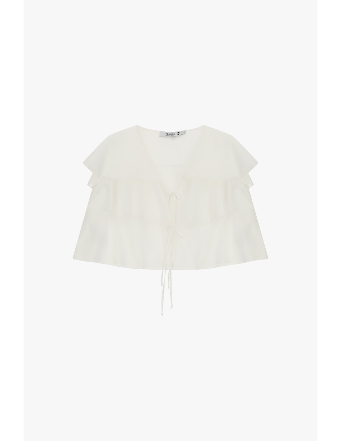 Vive a cidade com este top curto de corte amplo, caracterizado por delicados folhos nas mangas e ao longo do corpo. O pormenor com cordão central acrescenta um toque divertido que se presta a mil combinações, perfeito para expressar o teu estilo de forma decidida tanto com jeans como com saias largas.