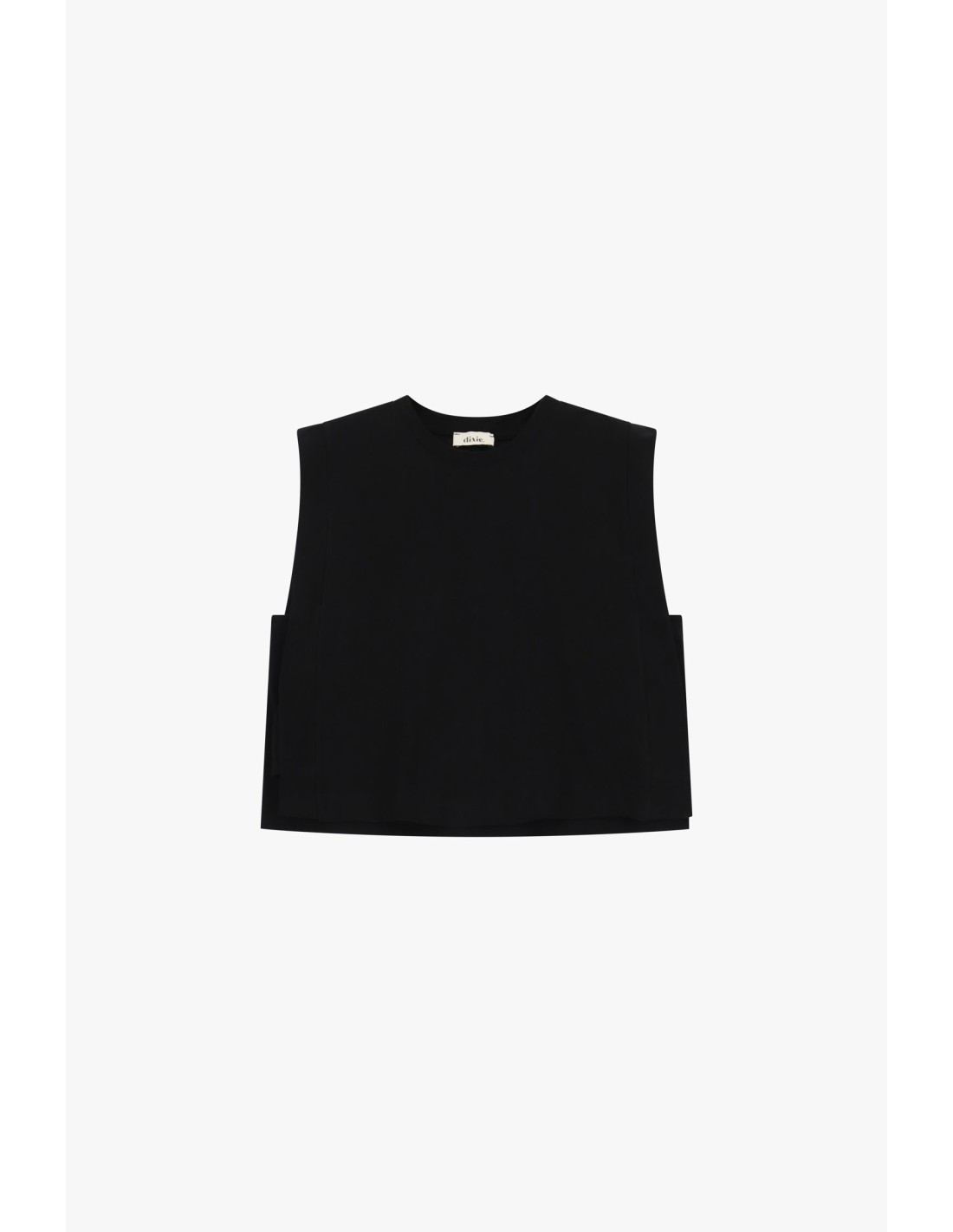 Este top sem mangas com corte recto e silhueta boxy é perfeito para dar um toque original aos looks do dia a dia. O comprimento curto permite várias combinações, enquanto o decote redondo clássico valoriza o rosto. Fácil de vestir tanto com calças de cintura alta como com saias fluidas, é ideal para qualquer ocasião informal.