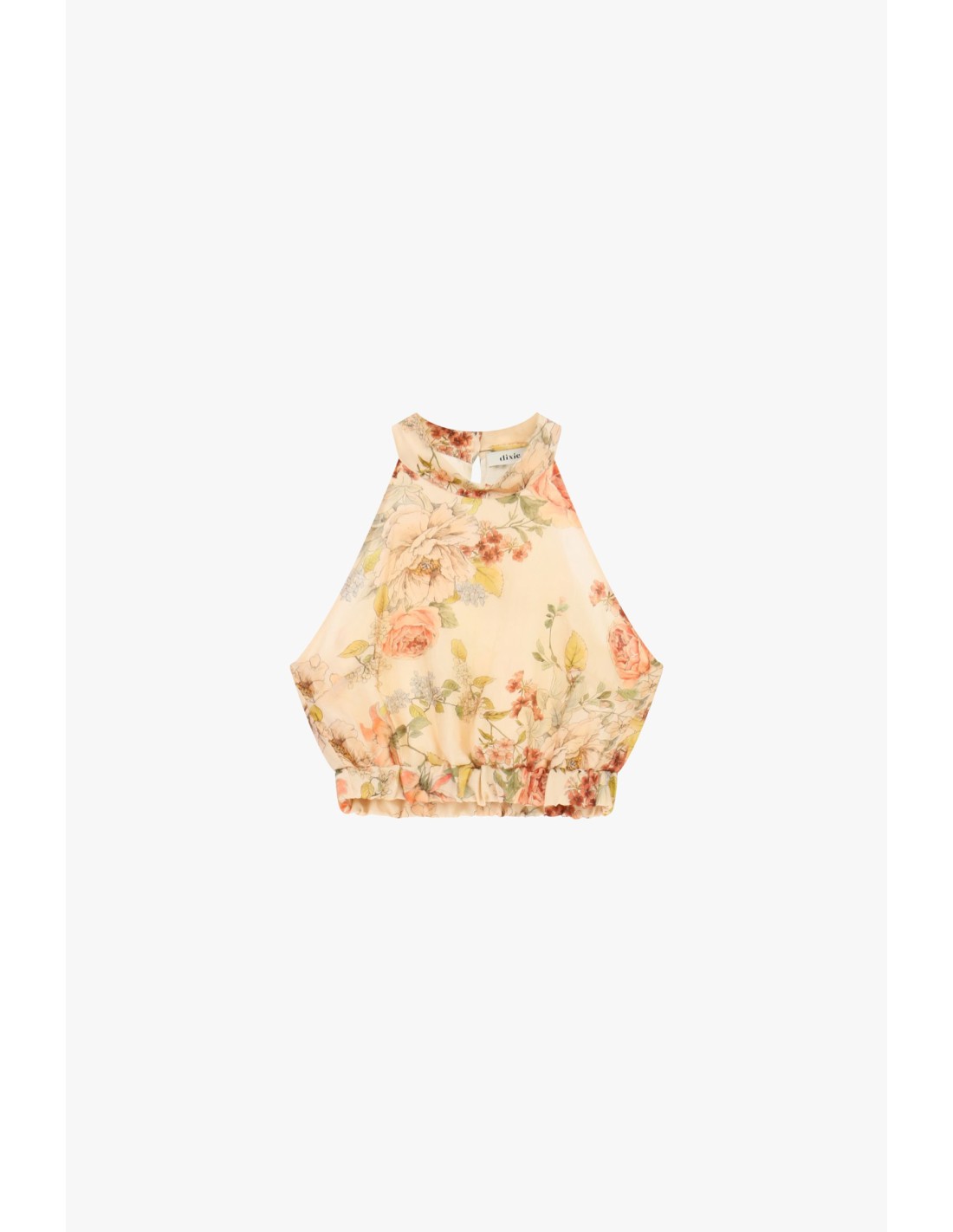 Top Cropped Com Estampa Floral E Elástico Dixie