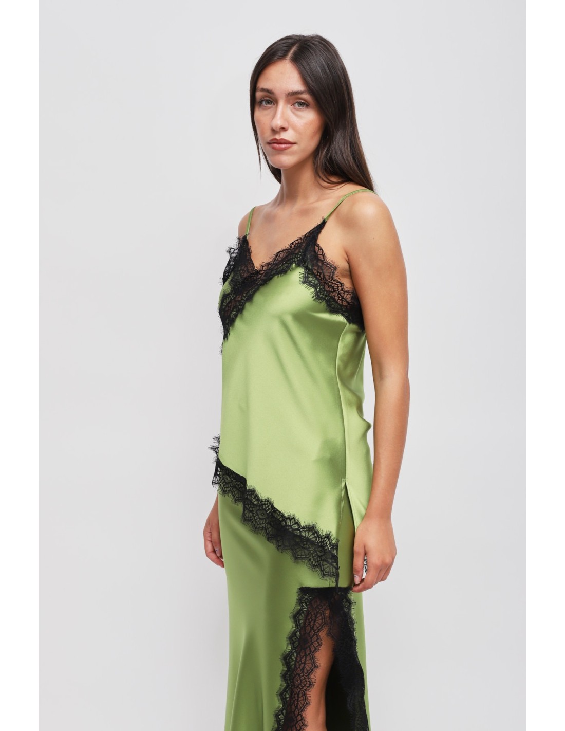 Maryley apresenta um top com corte fluido que valoriza a silhueta. O raso fluido acaricia a pele, enquanto inserções de renda com padrão geométrico e alças finas conferem um charme sedutor. Perfeito por baixo de um blazer para o escritório ou com denim e saltos para um aperitivo ou festa.