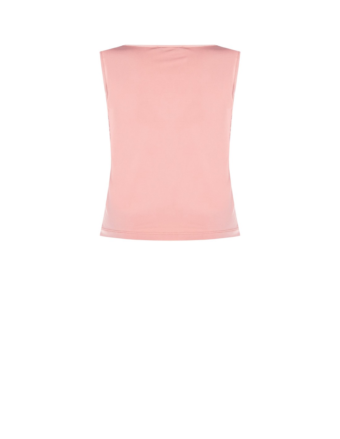 Top sem mangas com um corte macio que acaricia a silhueta com leveza. Il tule bordado e a textura luminosa de lantejoulas valorizam o decote com um corte redondo essencial. Perfeita para festas, cerimónias ou para dar carácter a um look de noite.