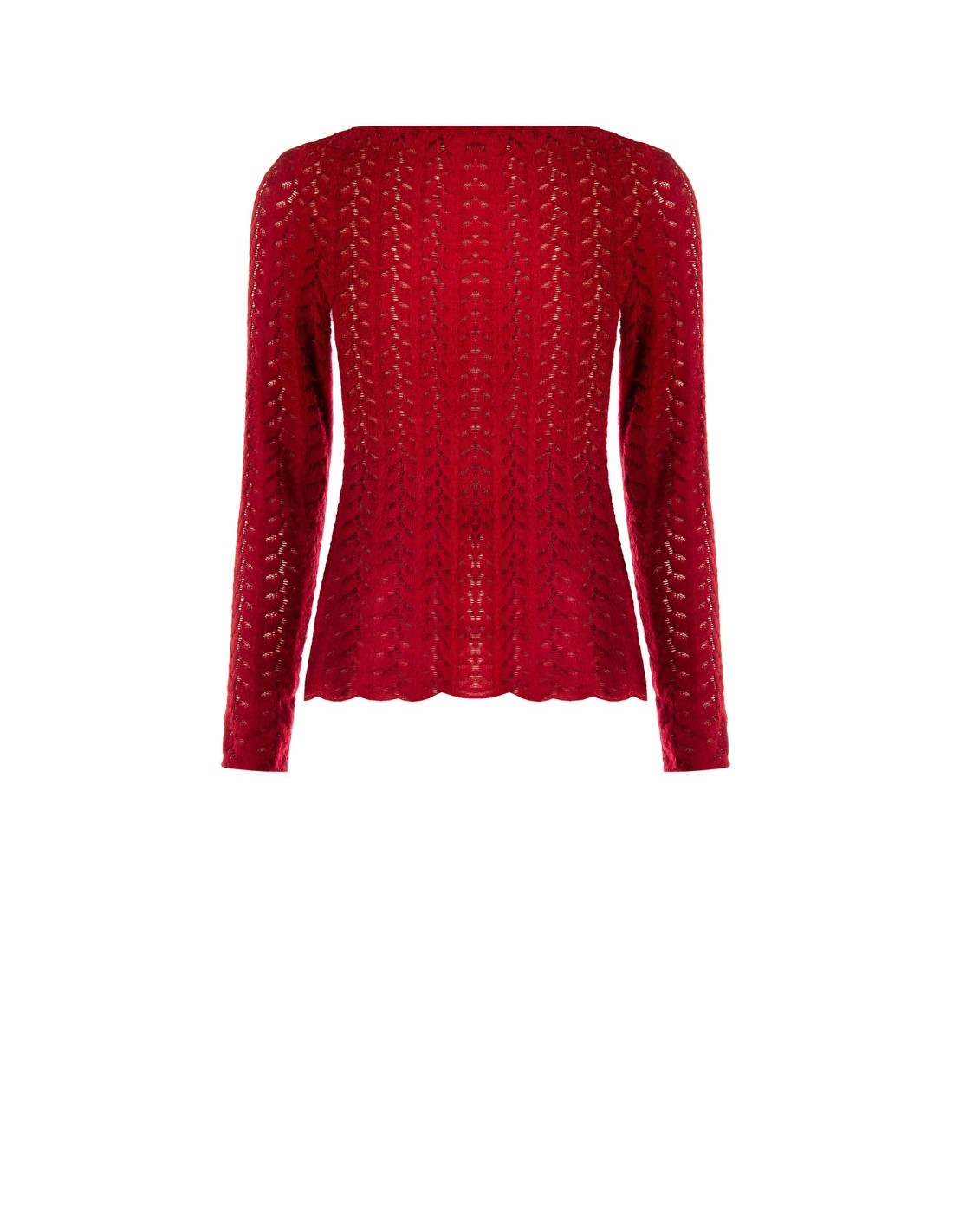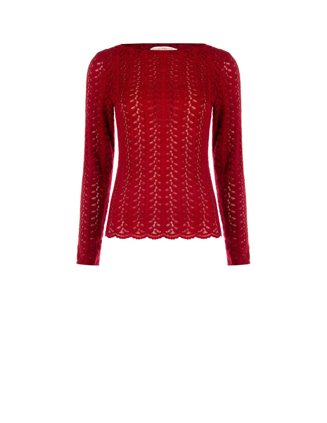 Rinascimento apresenta uma malha de corte justo que valoriza a silhueta. Malha macia com trabalho entrelaçado e aberturas leves para uma textura arejada. Decote barco e barra ondulada acrescentam feminilidade. Perfeito sob um blazer no escritório ou com denim para um look casual-chic do dia a dia.