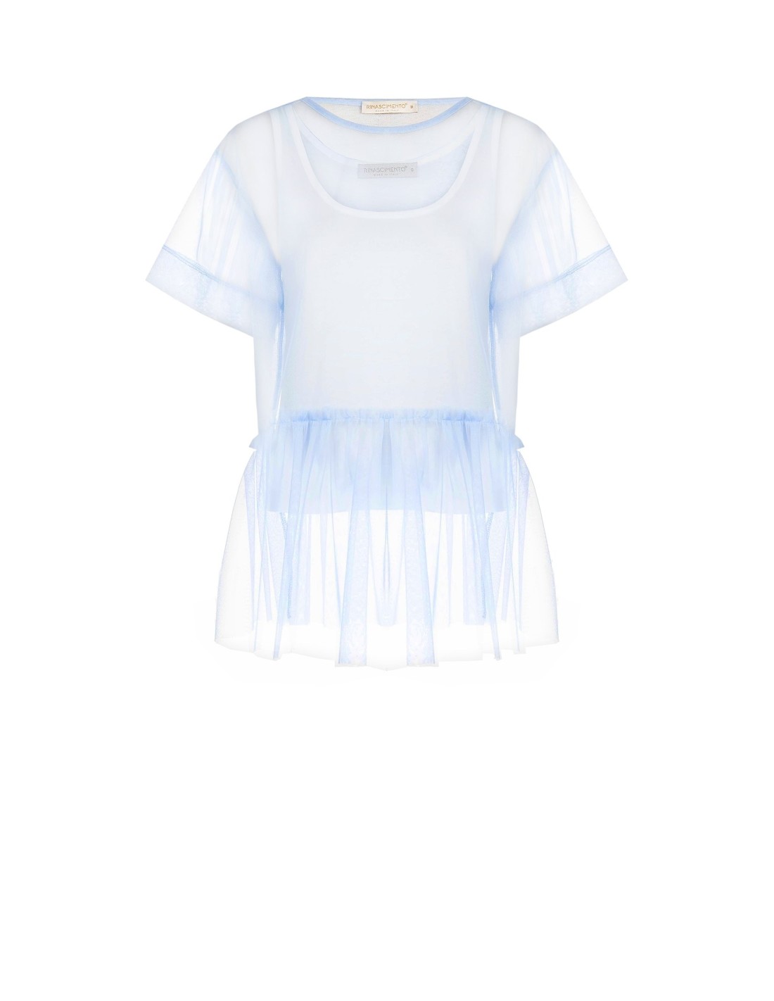 Blusa de corte suave e arejada, confeccionada em tule leve com top coordenado para um conforto impecável. O decote redondo e o folho na barra dão movimento e uma silhueta feminina. Perfeita do escritório ao aperitivo, com uma elegância descontraída.