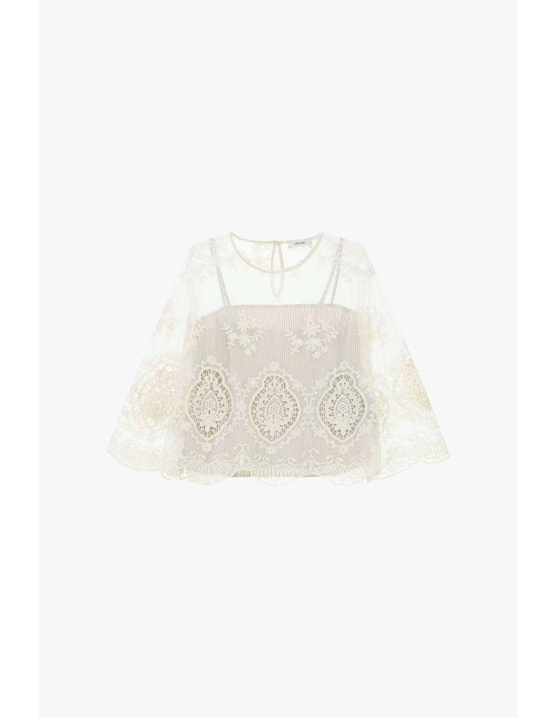 Top Bordado Com Mangas Amplas E Transparências Dixie