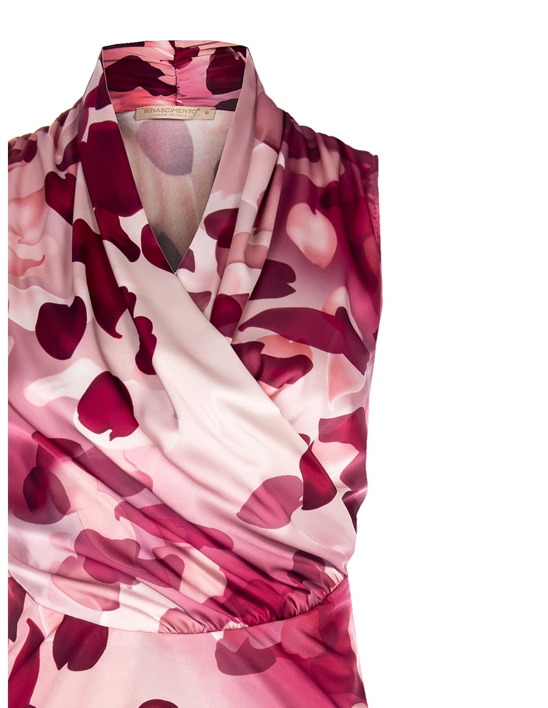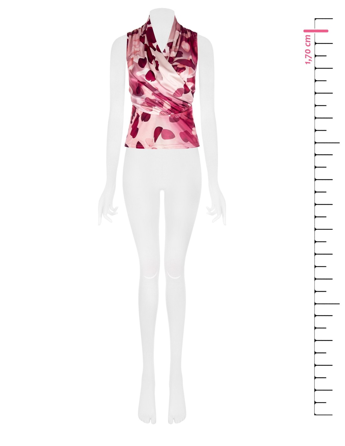 Rinascimento assina um top sem mangas com um corte envolvente que esculpe a cintura. Em cetim acetinado fluido, acaricia a pele e cai macio. Decote cruzado com efeito drapeado e franzido lateral que valoriza a silhueta. Perfeito com fato para o escritório ou com denim e sandálias para o aperitivo.