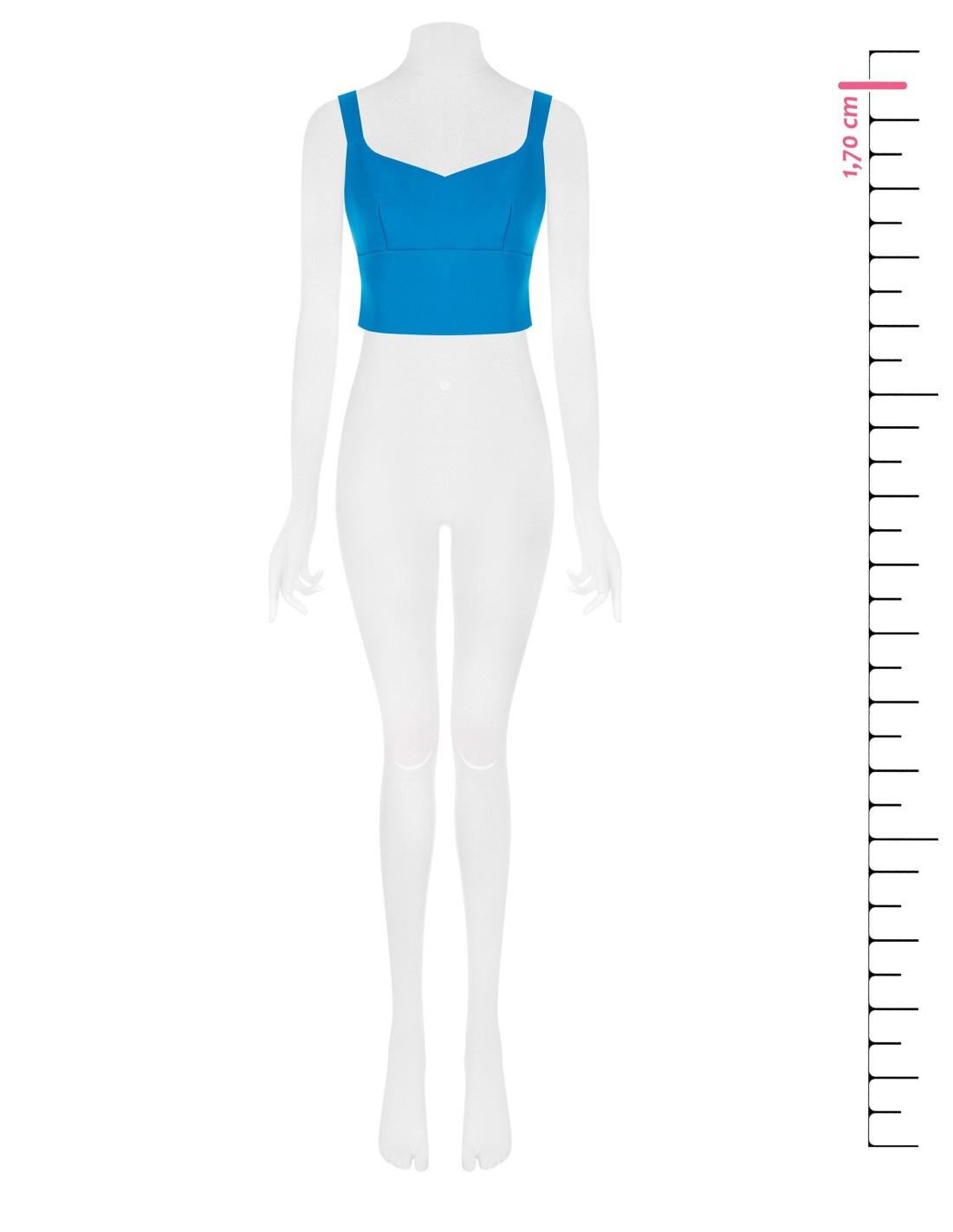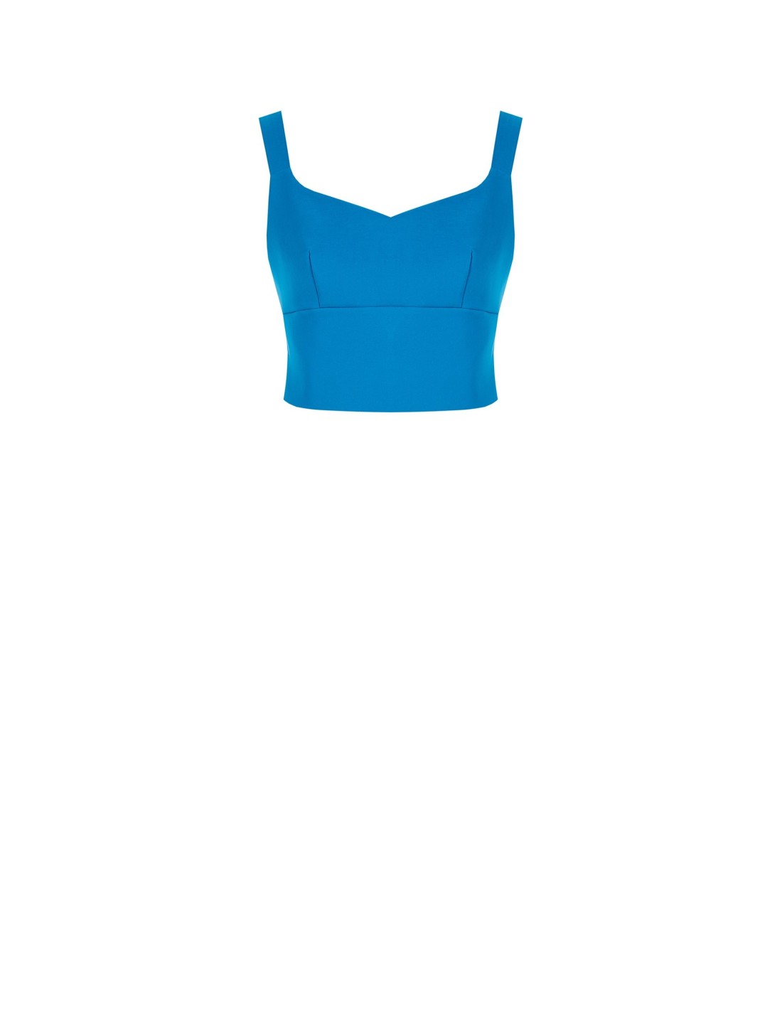 Crop justo Rinascimento em tecido técnico ligeiramente elástico: segue as linhas sem apertar e define a cintura. Decote em coração com alças largas, cortes sob o peito e pences que valorizam o decote. Perfeito com blazer e calças para o escritório, ou com saias de cintura alta para um aperitivo e festas.