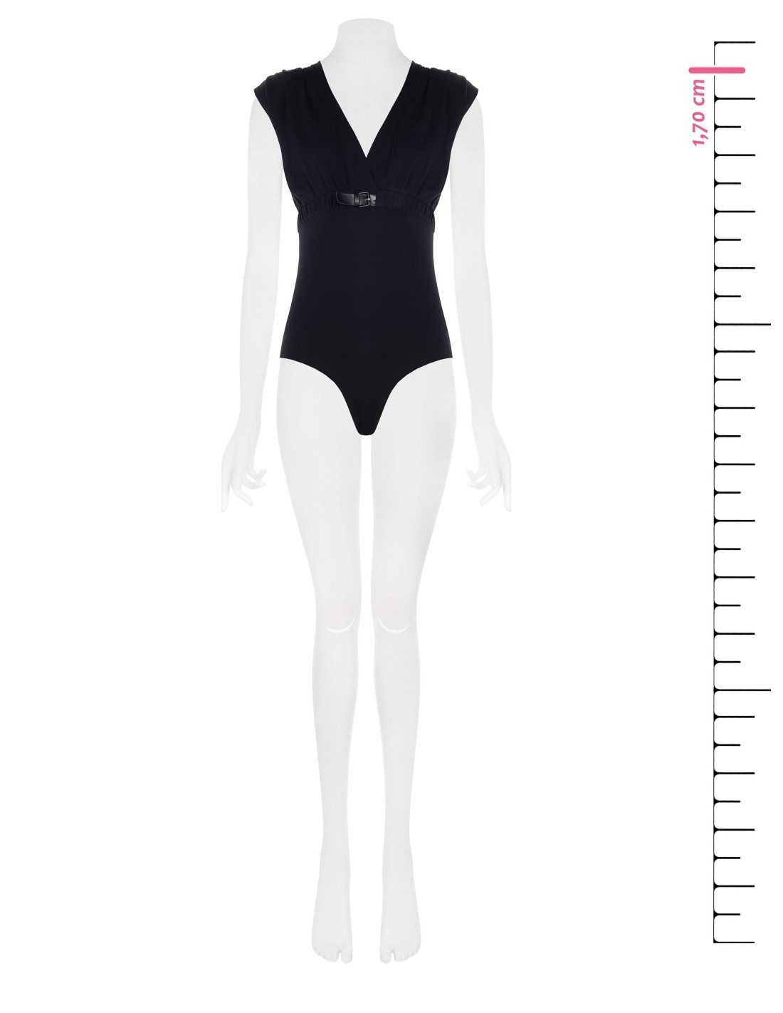 Body justo em jersey fluido e elástico, concebido para envolver a silhueta com conforto. O decote em V valoriza o colo, enquanto a faixa franzida com fivela na cintura define as formas. Perfeito do escritório ao aperitivo, por baixo de blazer ou com jeans de cintura alta.