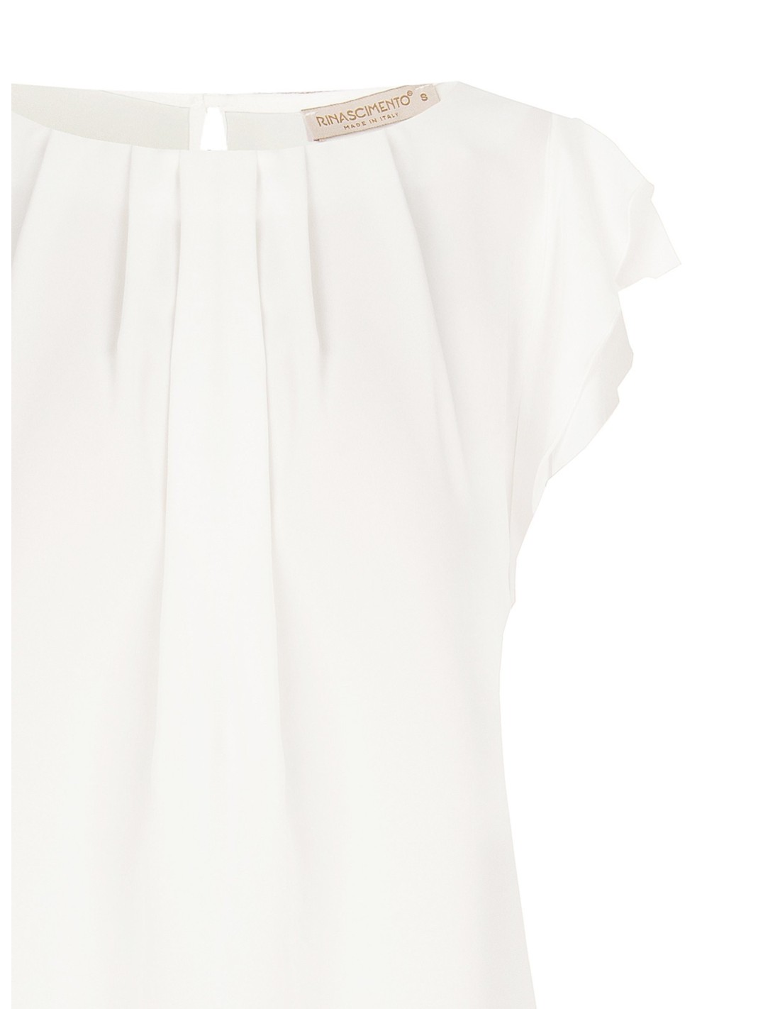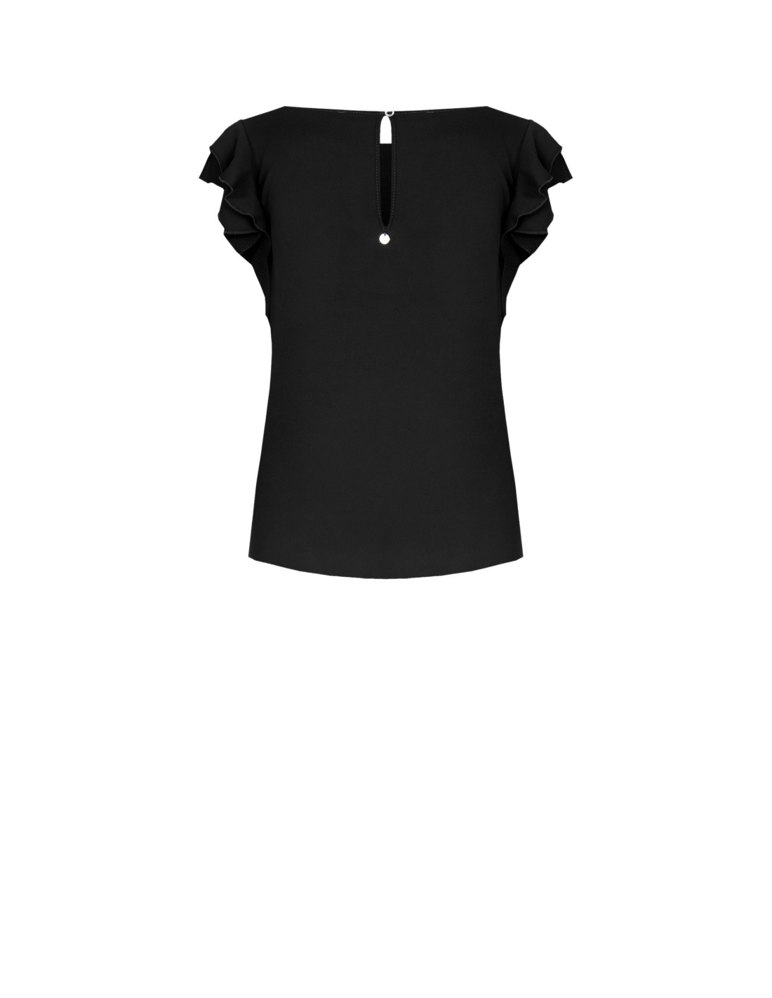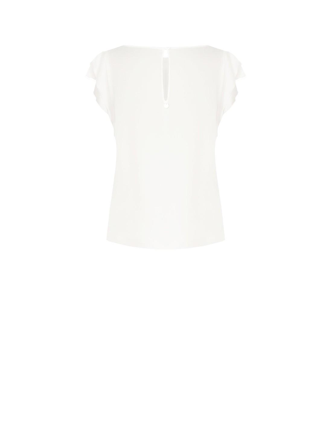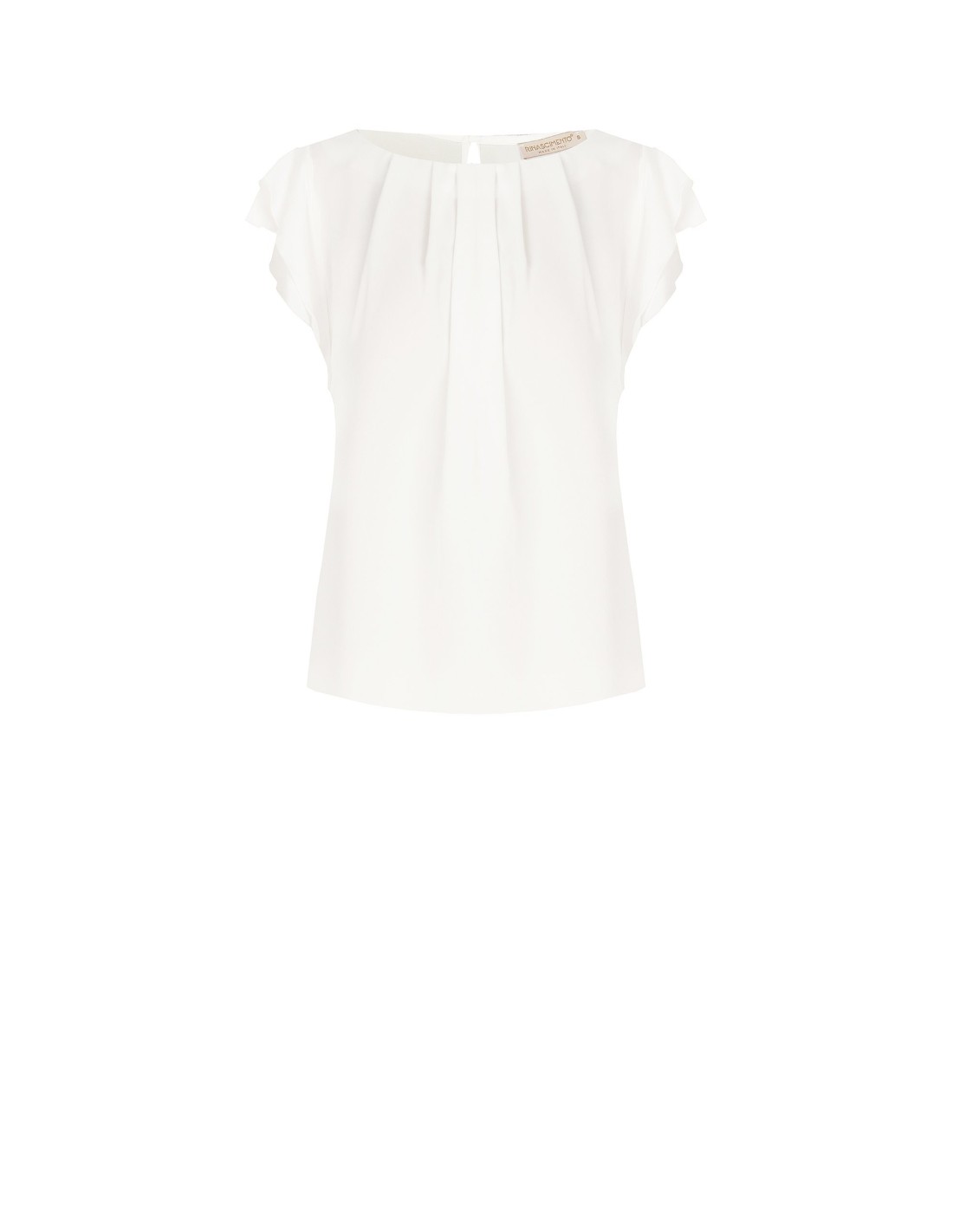 Blusa fluida em tecido leve que cai direita no corpo, garantindo conforto e uma silhueta refinada. Mangas com folhos e pregas na frente valorizam o decote, enquanto a abertura em gota nas costas acrescenta feminilidade discreta. Perfeita com um fato de escritório ou denim para um look everyday chic.