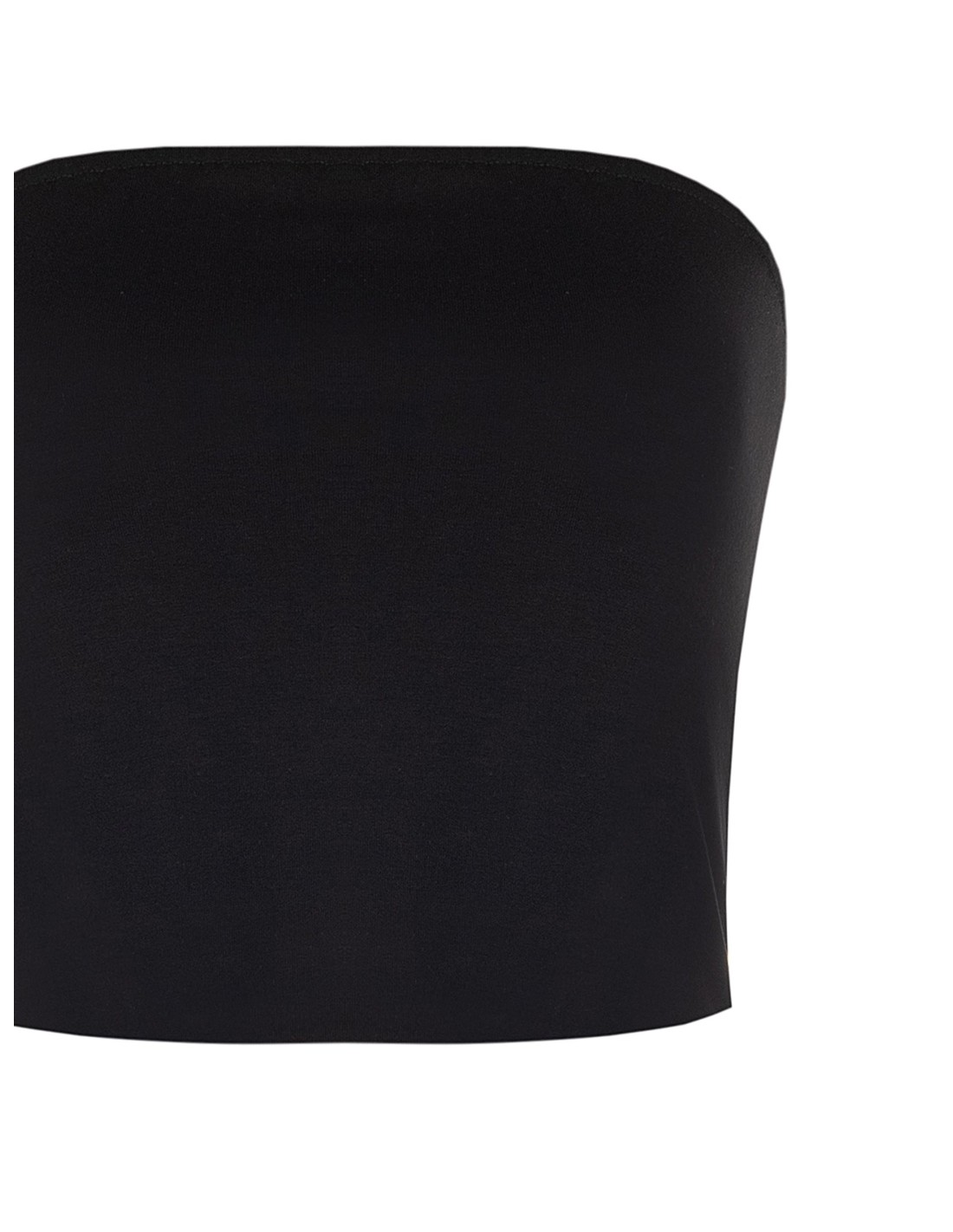 Bandeau ajustado em malha stretch, envolve o busto valorizando a silhueta sem apertar. Liso à frente, enriquecido pelo pequeno detalhe metálico na parte de trás. Perfeito sozinho para a festa ou por baixo de blazers e camisas para looks do dia a dia.