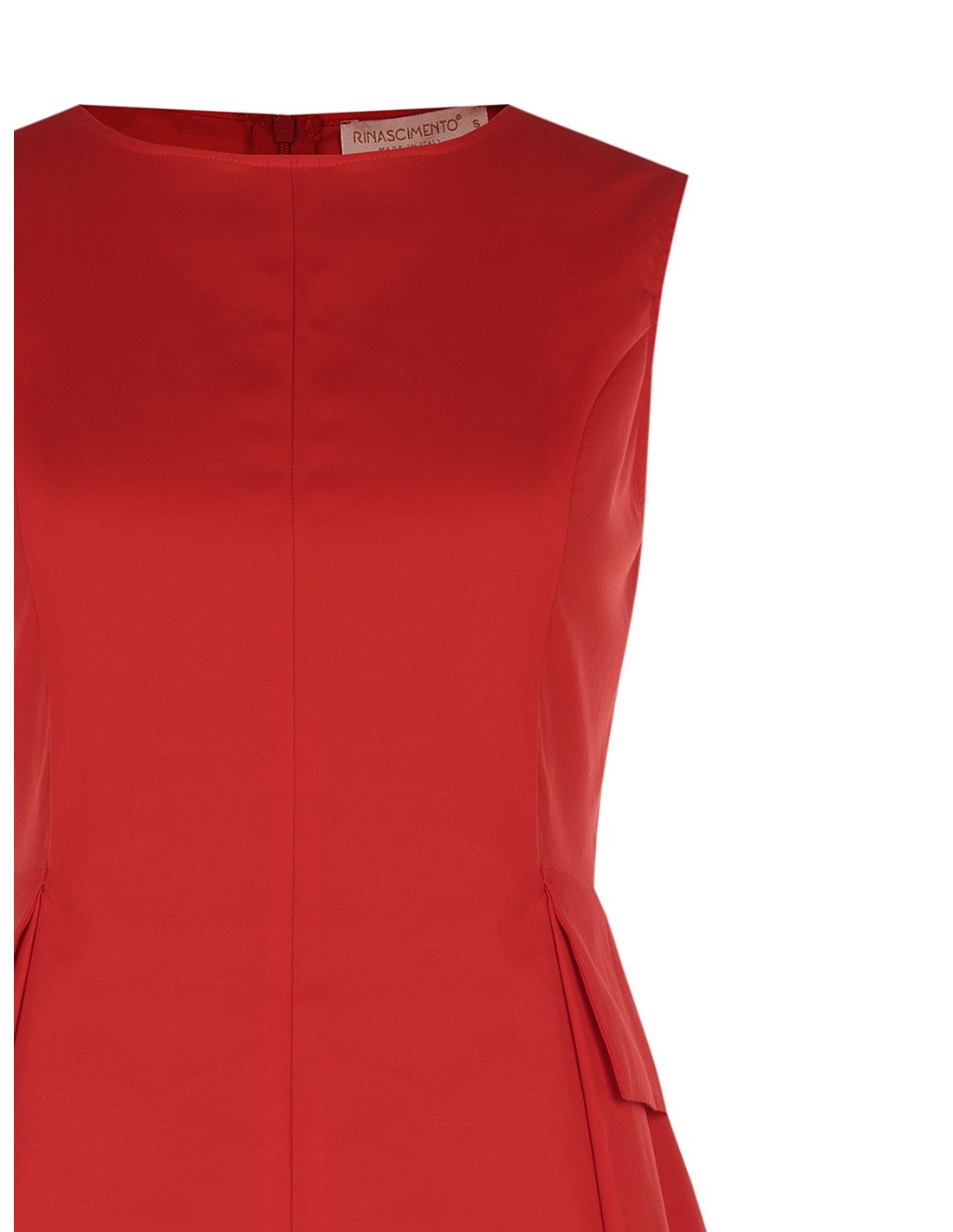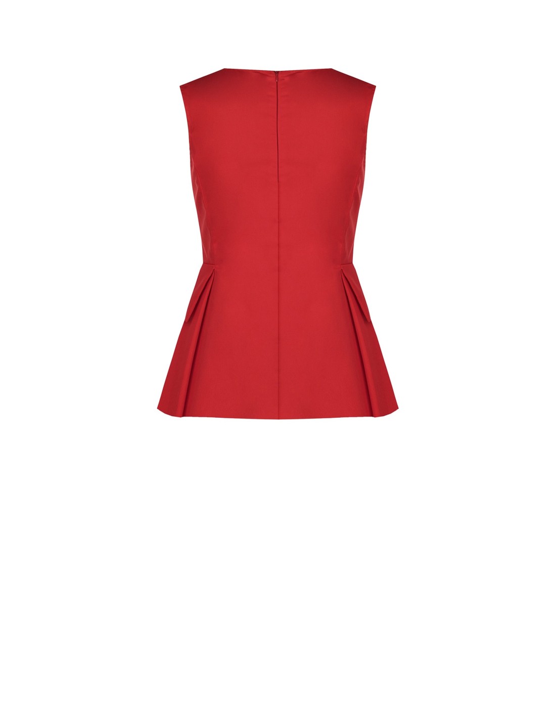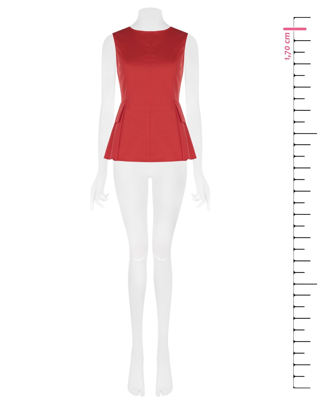 Blusa sem mangas de corte estruturado e corte evasê, concebida para acompanhar a silhueta com conforto. O tecido compacto de textura lisa valoriza pregas laterais e decote essencial, enquanto o fecho nas costas assegura praticidade. Perfeita do escritório ao aperitivo.