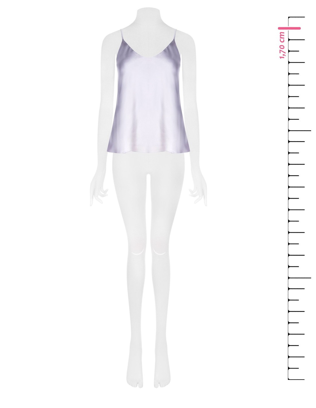 Top com linha modelada e fluida, em cetim liso e luminoso que acaricia a silhueta com leveza. O decote em V e as alças finas acrescentam feminilidade e versatilidade. Perfeito por baixo do blazer no escritório ou com uma saia para aperitivos e festas.