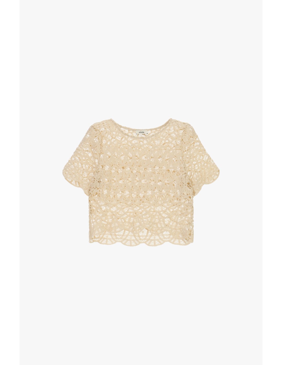 Top Traforado Com Mangas Curtas E Borda Ondulada Dixie