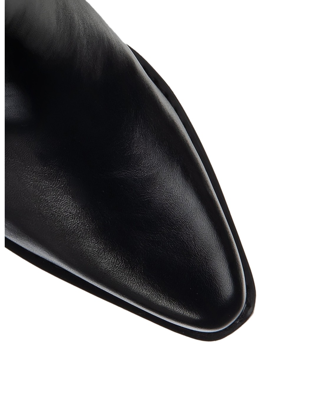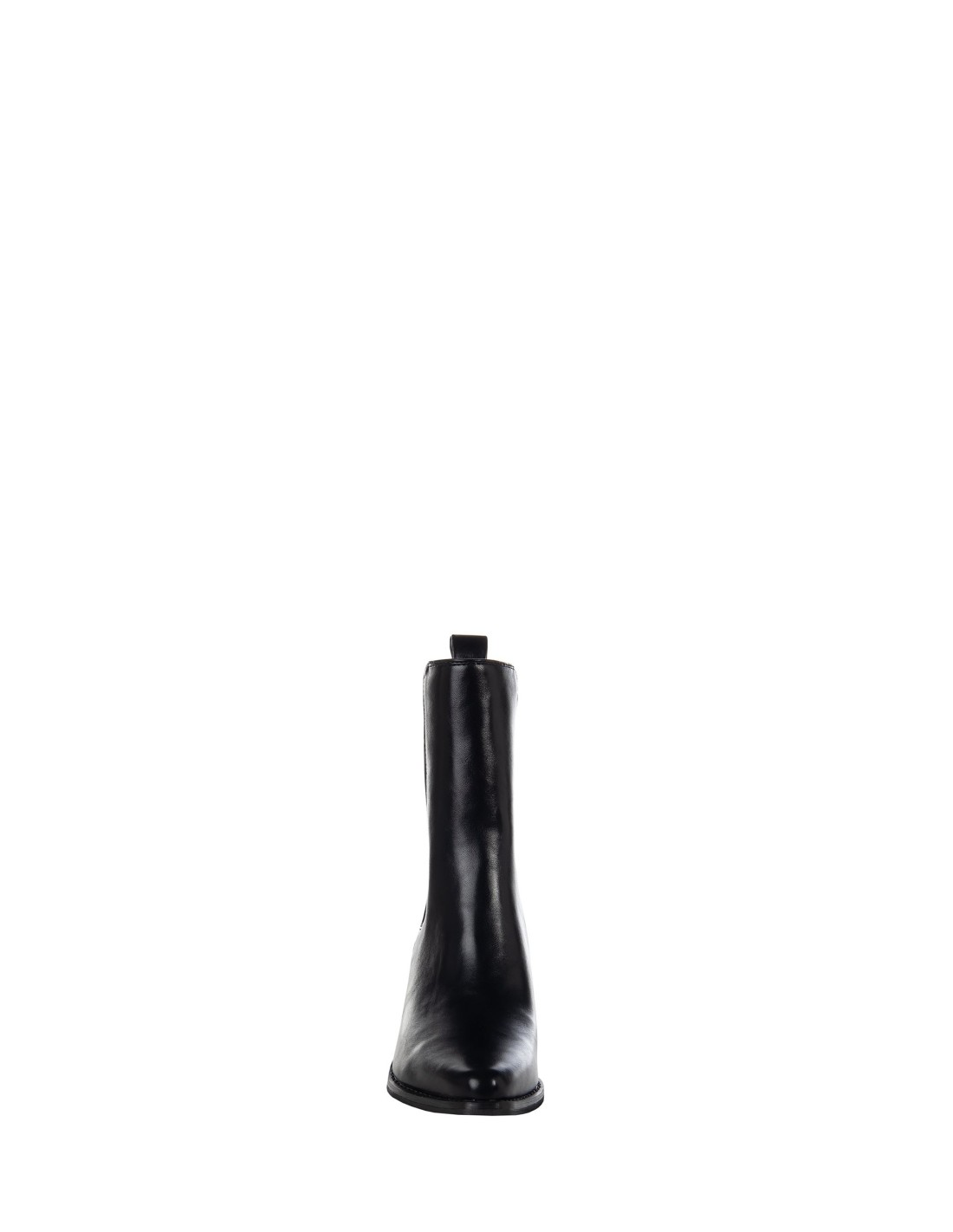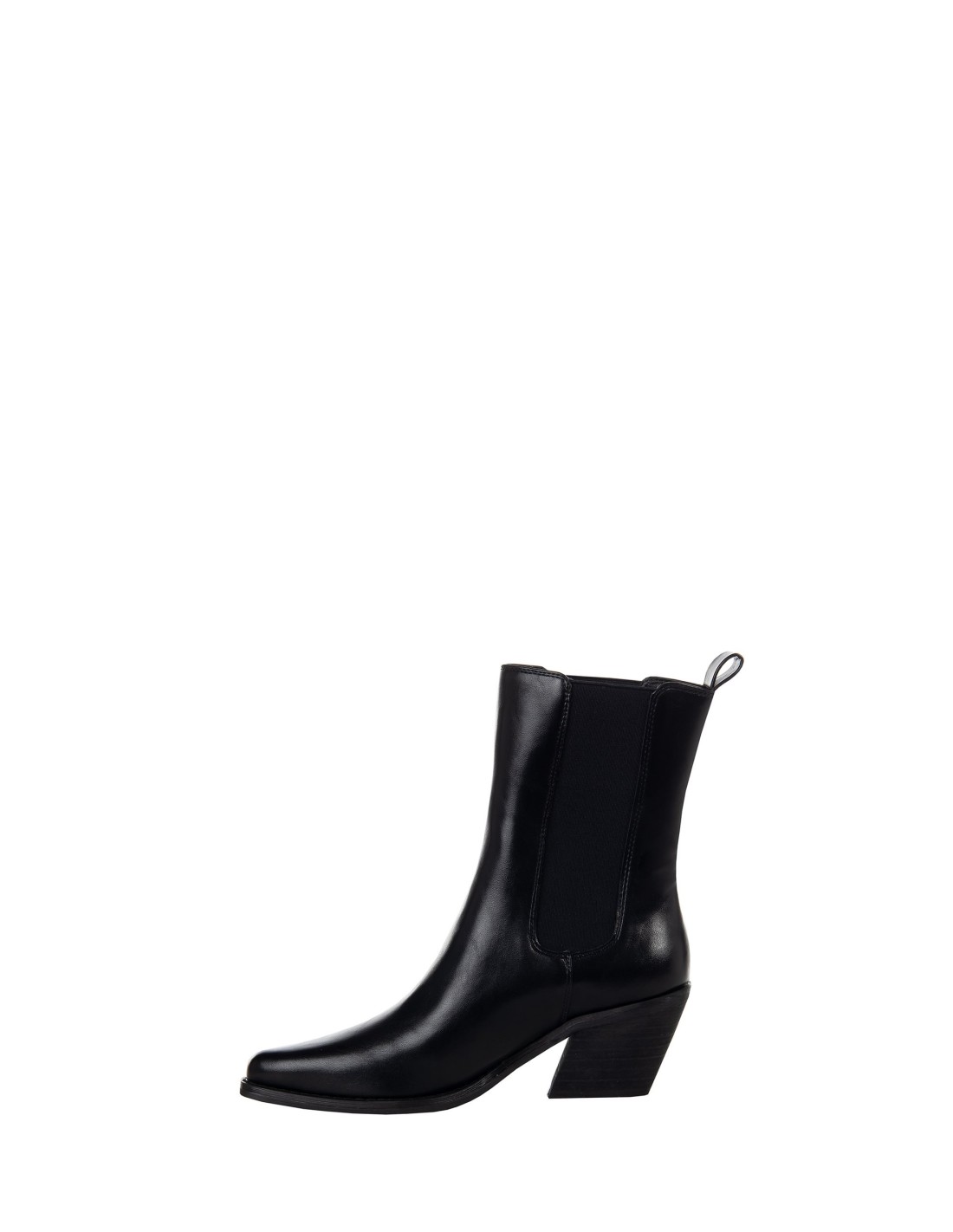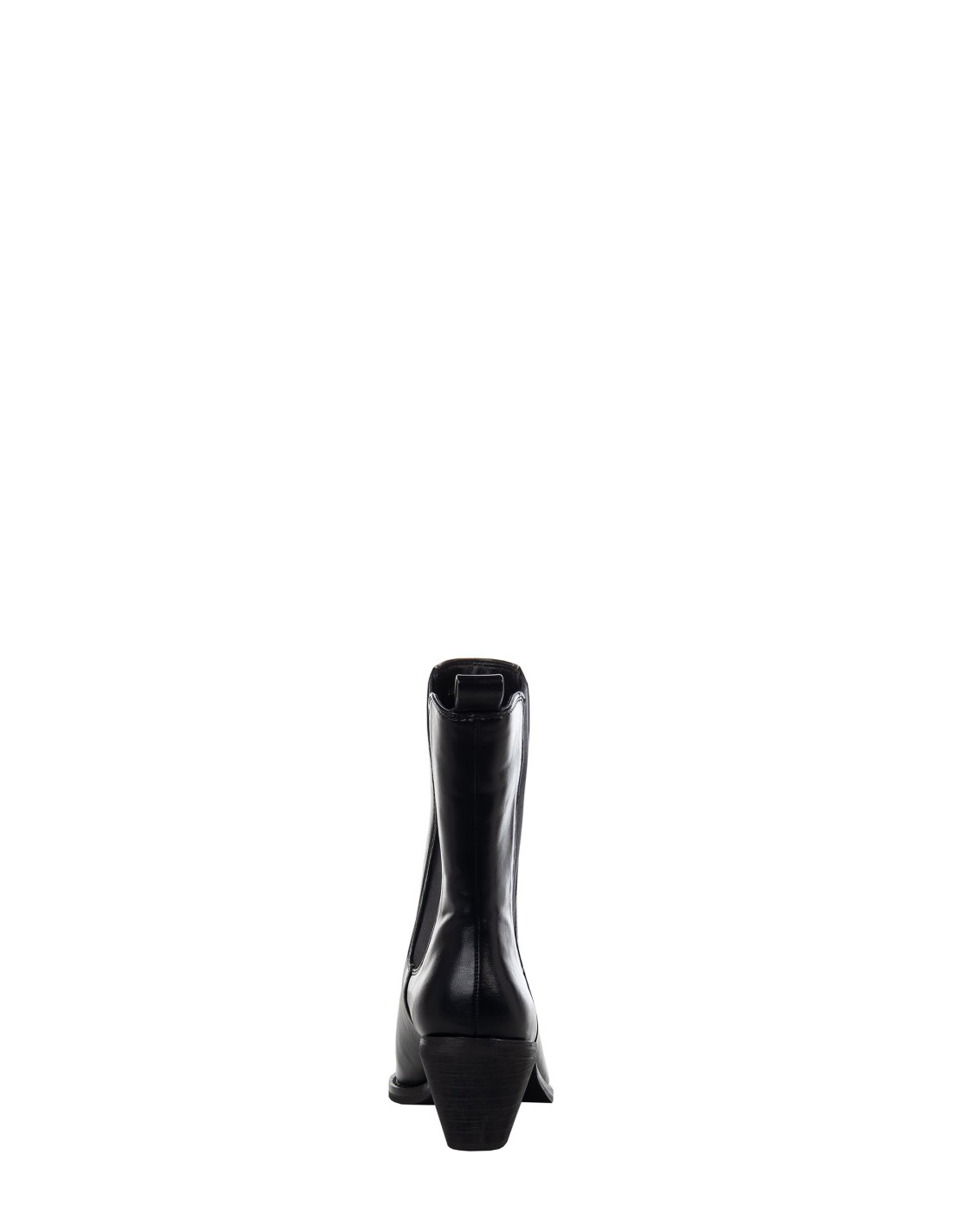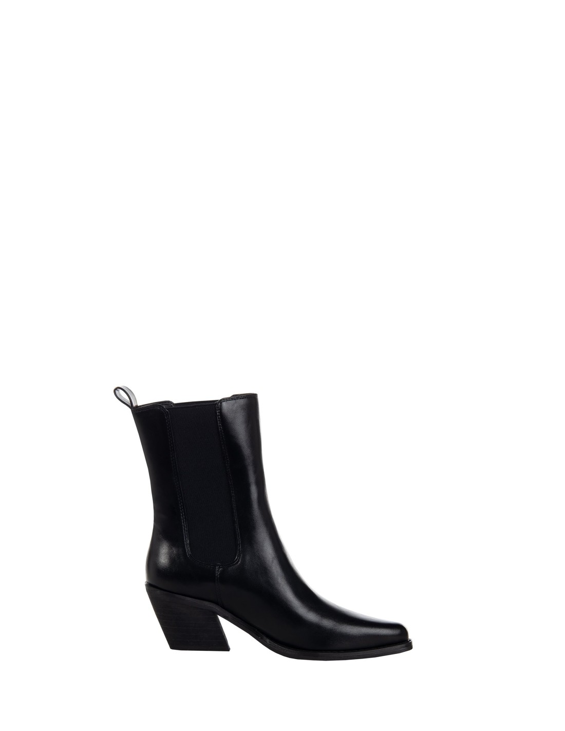 Bota curta até meio da canela em pele lisa e macia, com uma linha afilada que alonga a perna. Inserções elásticas laterais e prática lingueta posterior para calçar rapidamente, salto quadrado e estável. Perfeita do denim do dia a dia a looks de escritório e para um aperitivo.