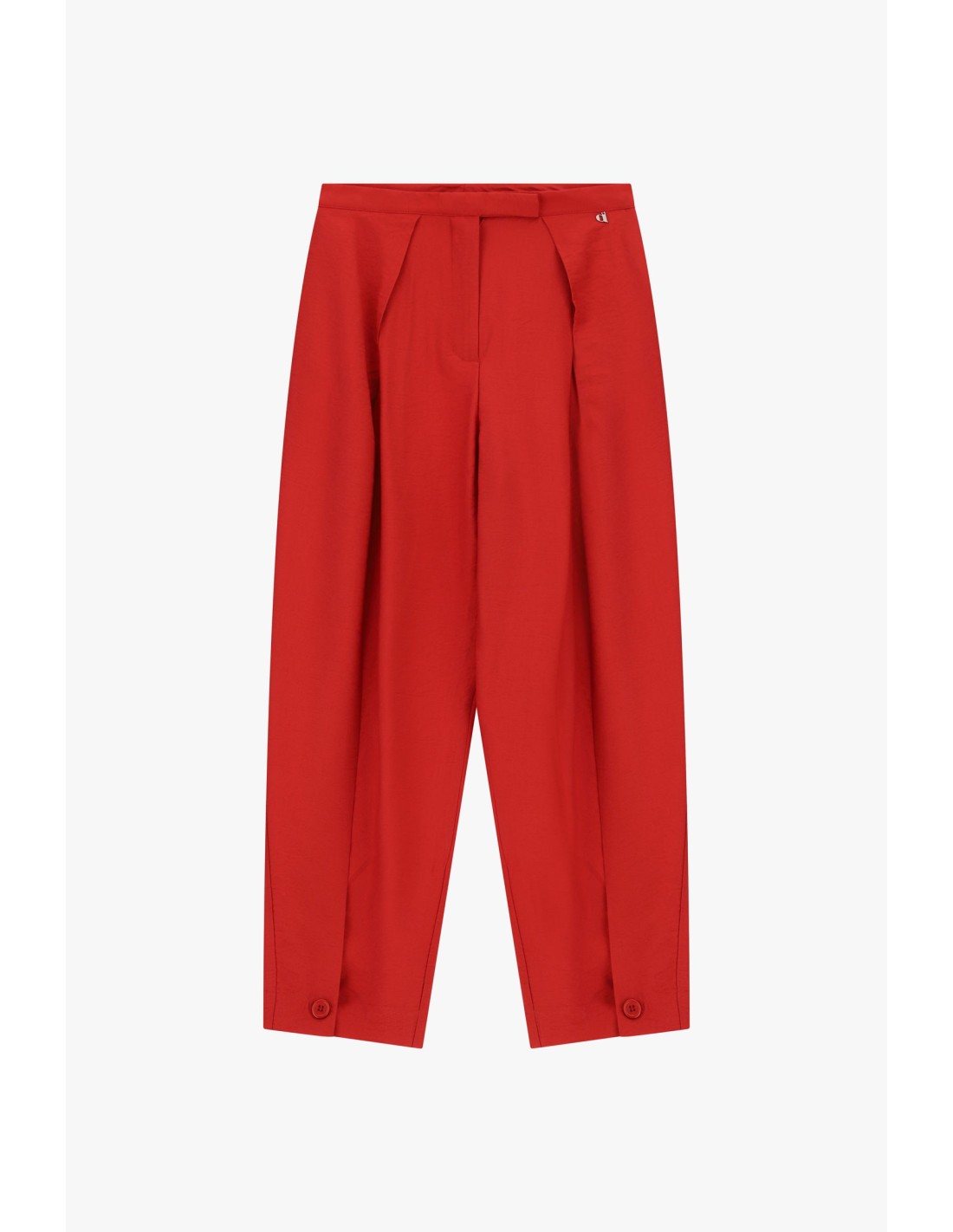 Inspira-te com estas calças palazzo de corte amplo e pences frontais que dão movimento e leveza ao look. O detalhe dos botões na bainha acrescenta um toque de originalidade, perfeito tanto para o dia a dia como para uma ocasião especial. Imagina usá‑las com uma camisa macia ou um top, para te sentires sempre confortável mas nunca banal.